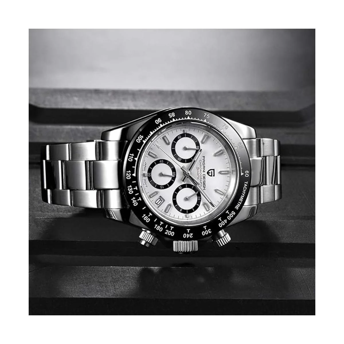 Pagani Design Daytona Homage Relojes de cuarzo para hombre, movimiento japonés, bisel de cerámica, correa de acero inoxidable, corona atornillada, impermeable, reloj cronógrafo deportivo
