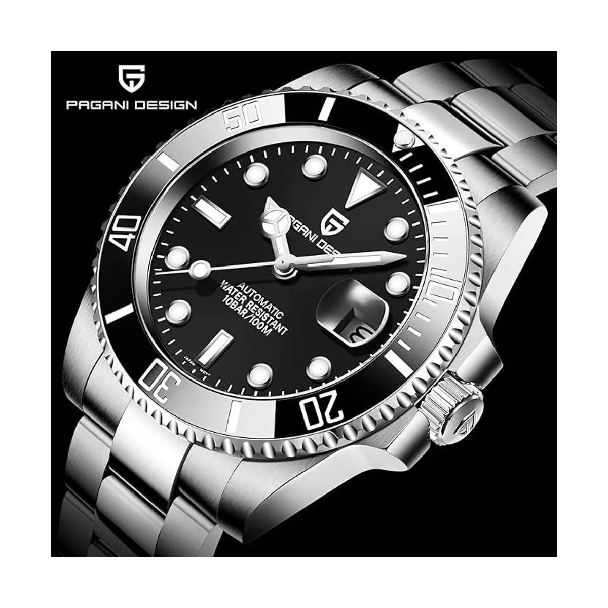 Pagani Design Reloj de pulsera de acero inoxidable para hombre, 1.57 pulgadas, japonés, automático, mecánico, resistente al agua, con cristal de zafiro