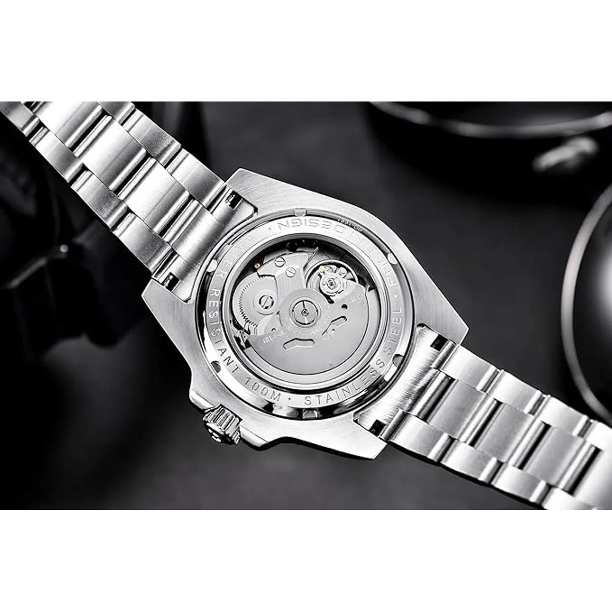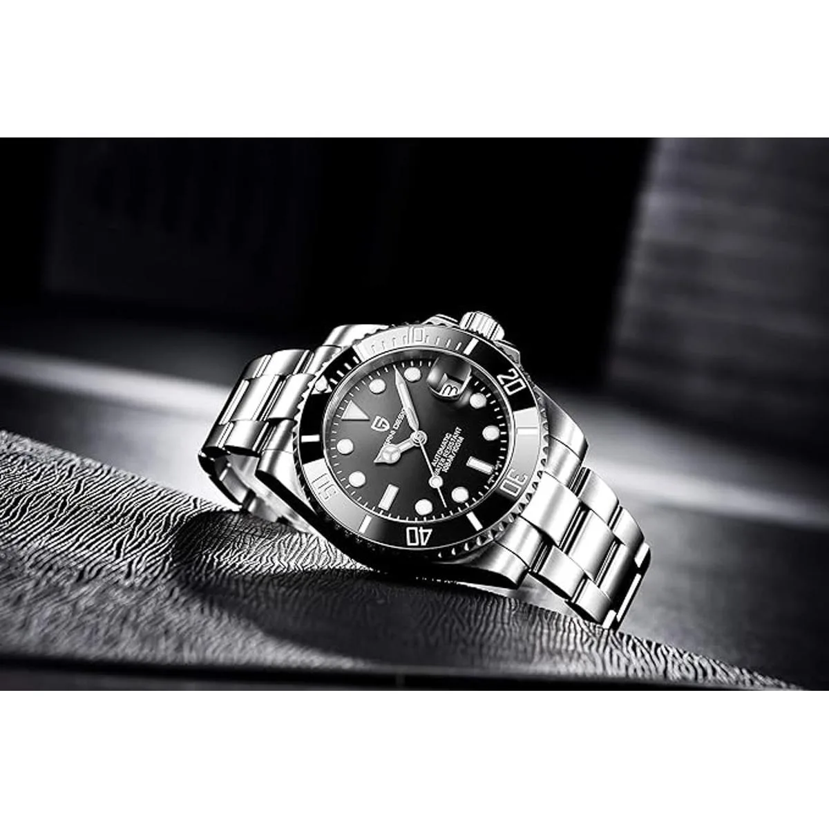 Pagani Design Reloj de pulsera de acero inoxidable para hombre 1.575 in, mecanismo mecánico, resistente al agua, con zafiro, cristal