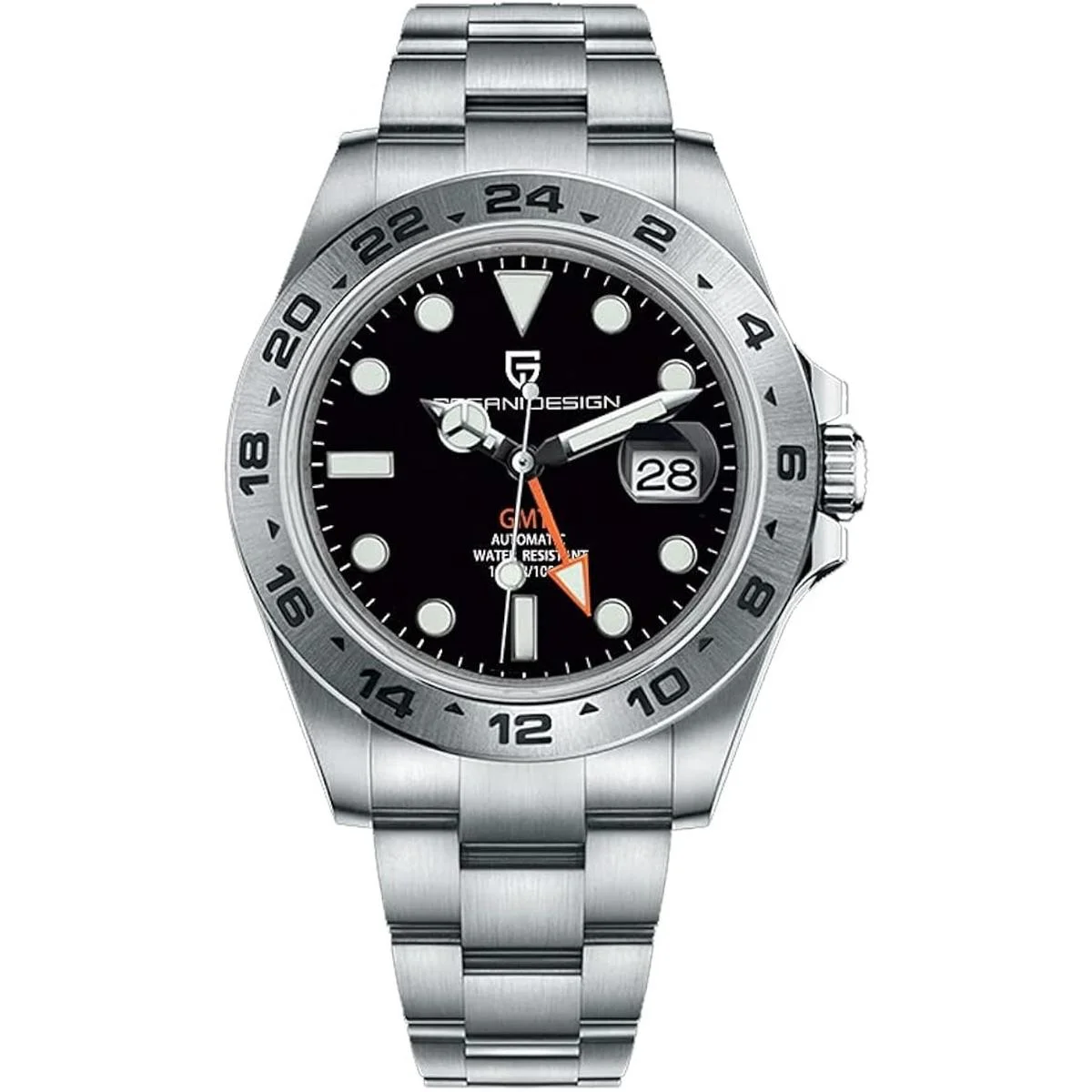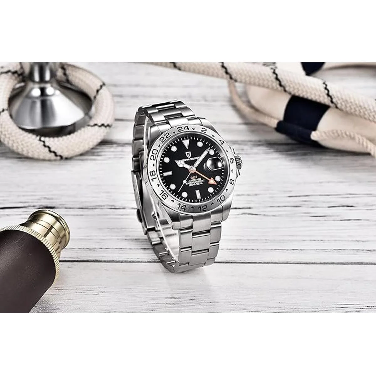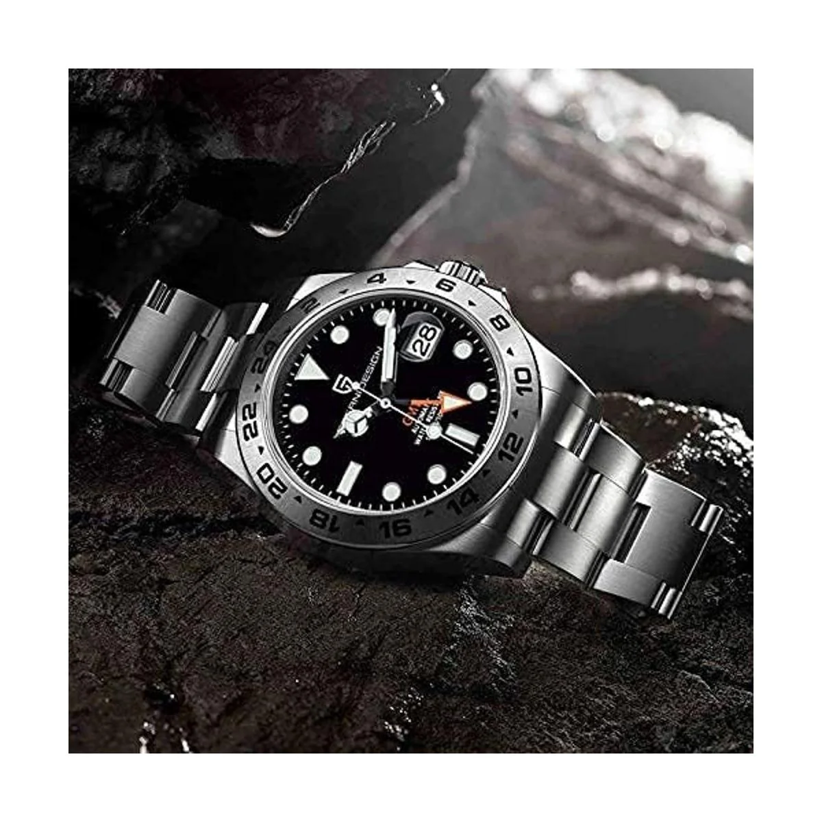 Pagani Design Reloj mecánico para hombre con correa de acero inoxidable con espejo de cristal de zafiro impermeable, 328.1 ft