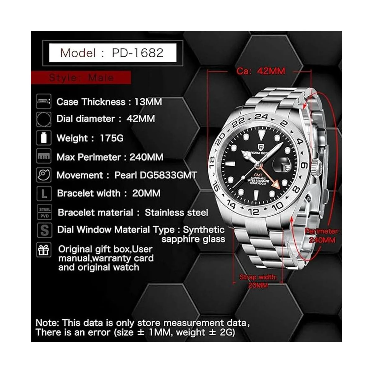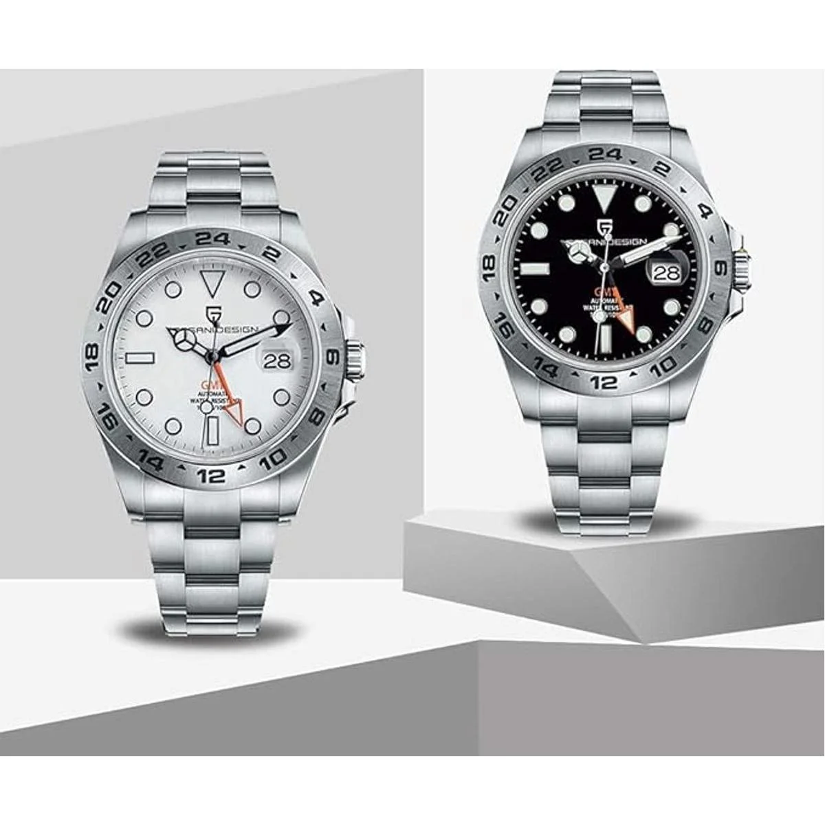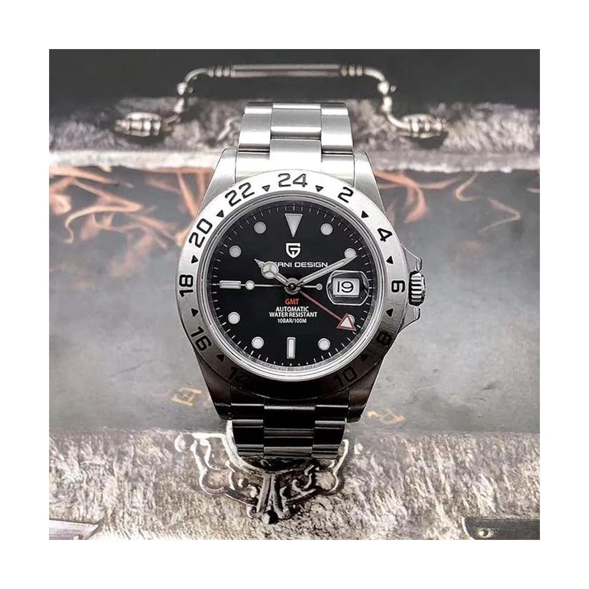 Pagani Design Reloj mecánico para hombre con correa de acero inoxidable con espejo de cristal de zafiro impermeable, 328.1 ft