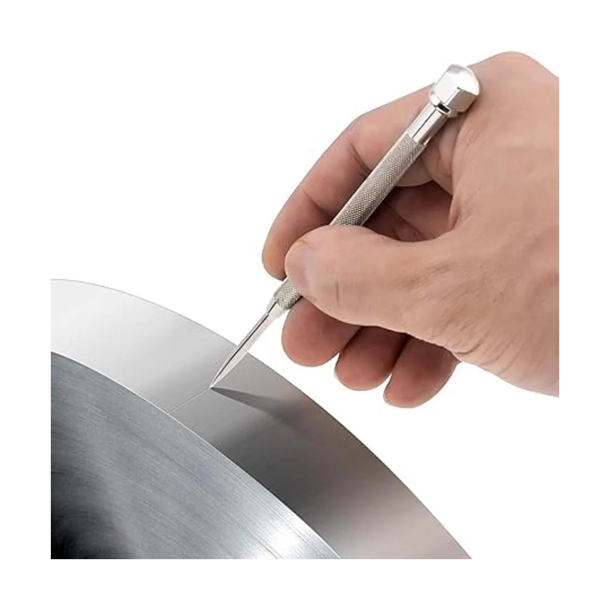 Material: el raspador de bolsillo 70A está hecho de acero de alta calidad 45, moleteado y niquelado. El cuerpo de acero de Scriber hace que funcione sin esfuerzo en materiales duros incluyendo acero endurecido, acero inoxidable, cerámica y vidrio.
