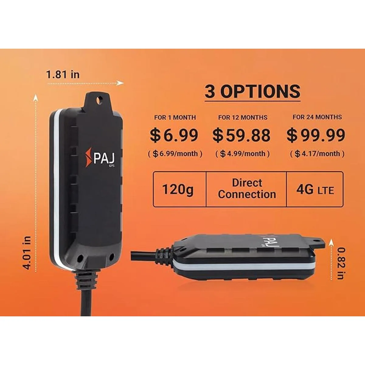 PAJ GPS Rastreador 4G Dispositivo de seguimiento en tiempo real para vehículos, camiones, motocicletas, flotas Pequeño portátil Batería permanente a través de conexión a batería externa 832 V Requiere suscripción