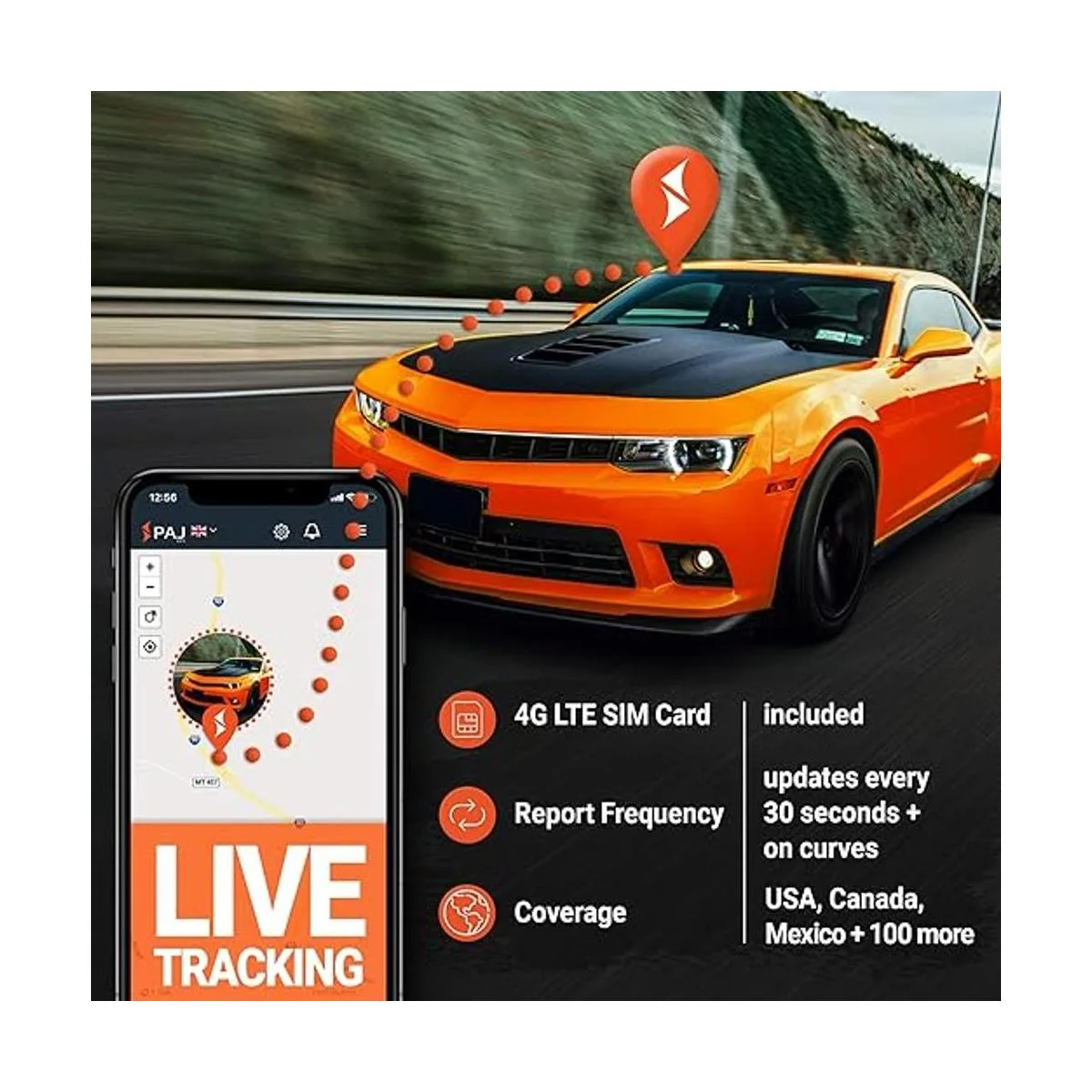 Seguimiento GPS más fácil y rápido: PAG GPS ofrece el seguimiento GPS más rápido para vehículos, camiones, barcos, motocicletas. Nuestros dispositivos de seguimiento vienen con tarjeta SIM integrada incluida y funciona en todo el mundo, asegurando la conexión a la mejor red 4G LTE disponible. Seguimiento de distancia ilimitada en tiempo real. Recibe alertas de ubicación del rastreador GPS a través de nuestras aplicaciones iOS/Android.