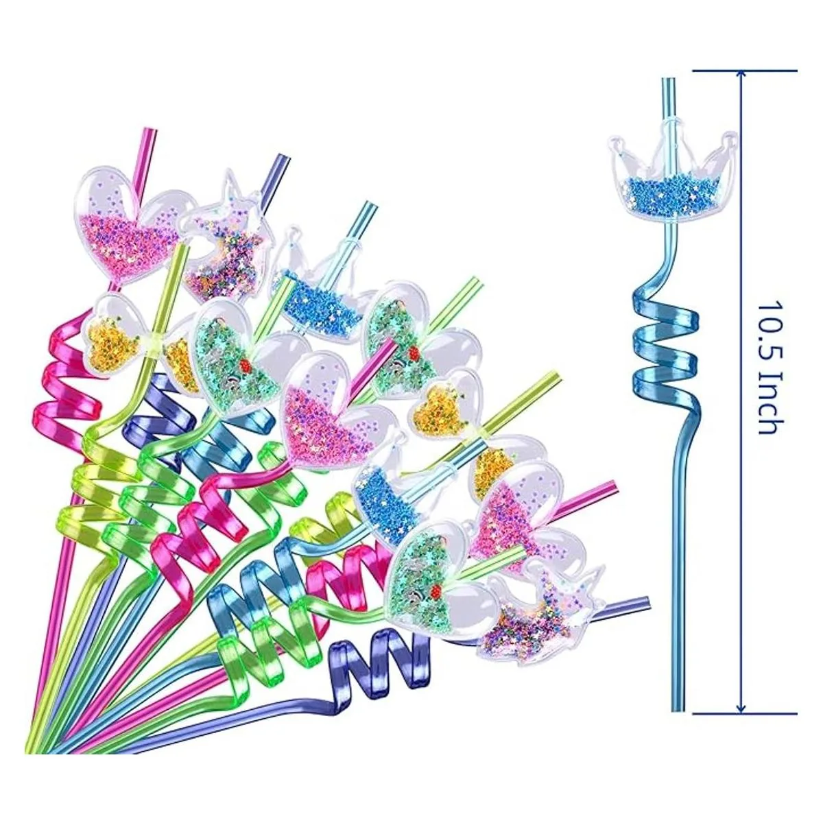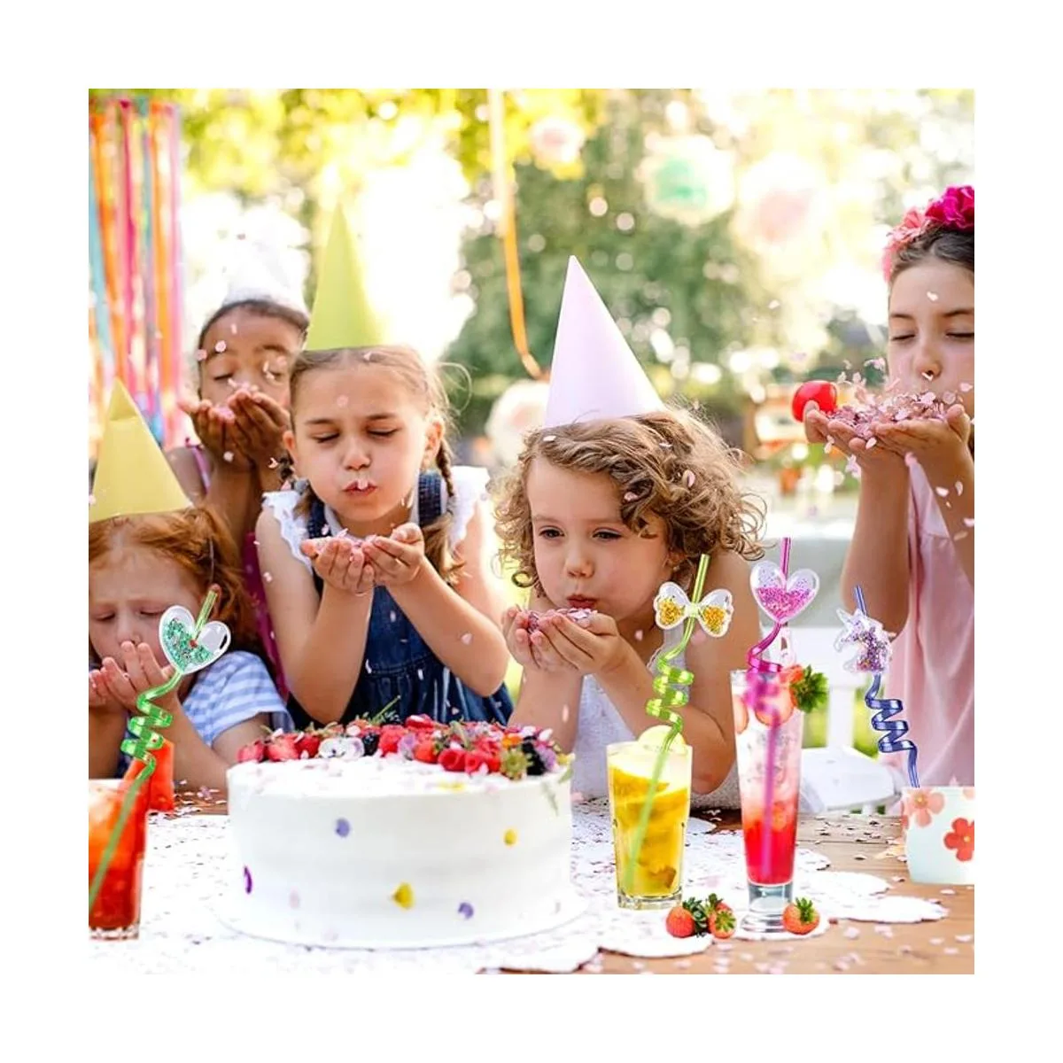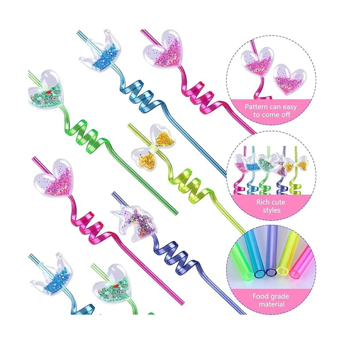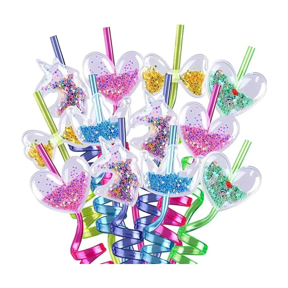 Pajitas con purpurina para recuerdos de fiesta, popotes brillantes para niños, hijas, suministros de fiesta, bolsas de regalo de golosinas, 20 pajitas reutilizables brillantes en forma de corazón para niñas, decoraciones de fiesta en la piscina
