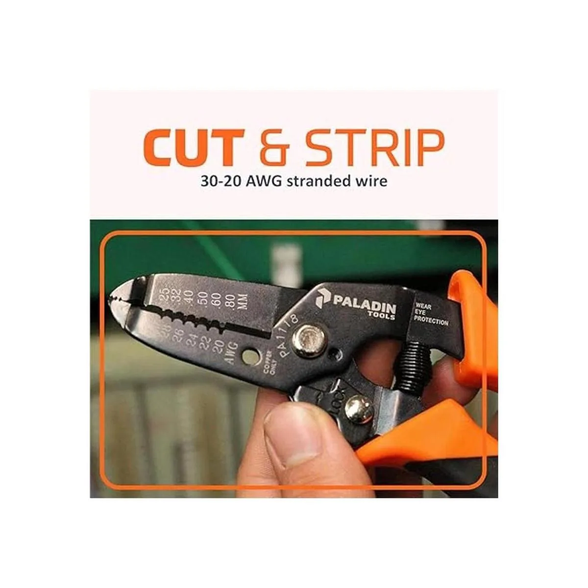 Paladin Tools Pelacables y cortador de alambre de 20 a 30 AWG Herramienta de pelado de alambre resistente de grado profesional