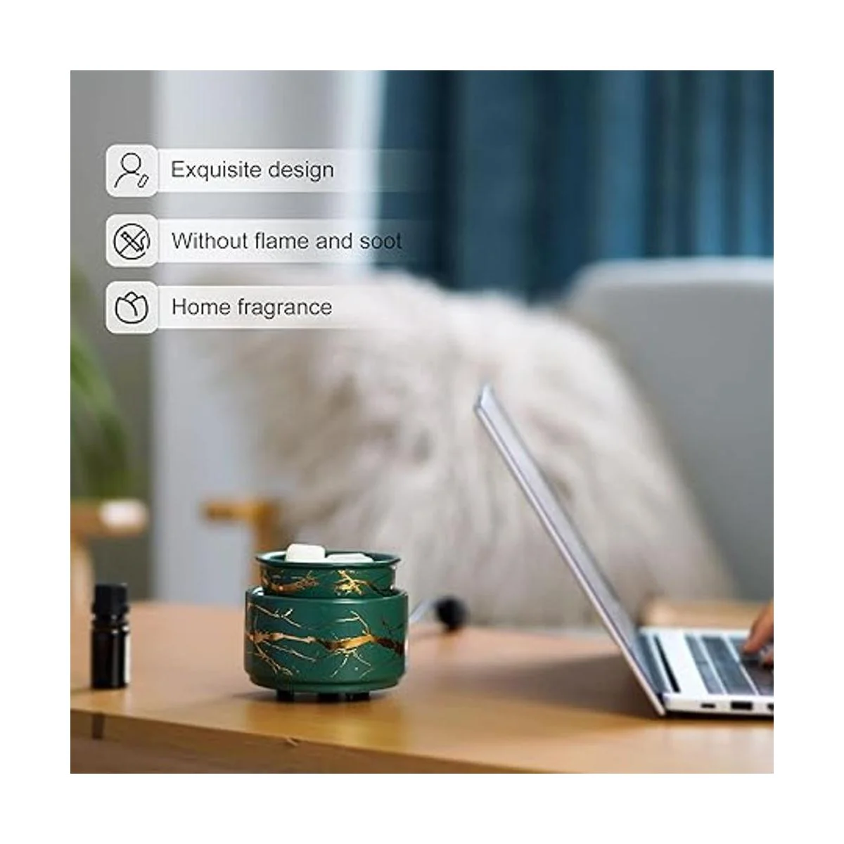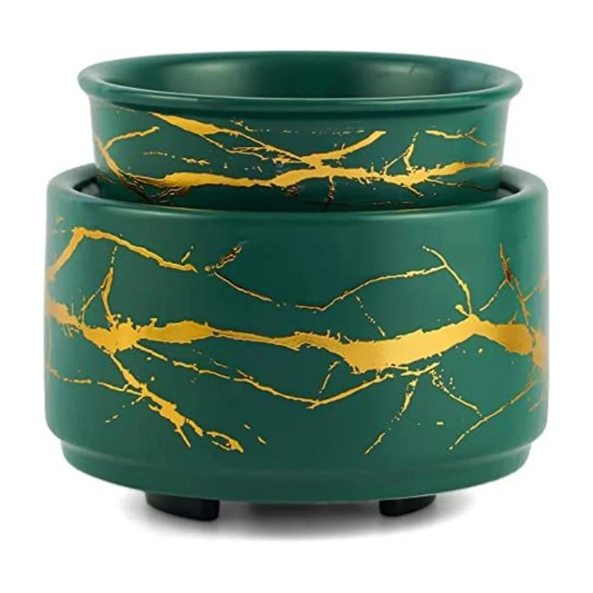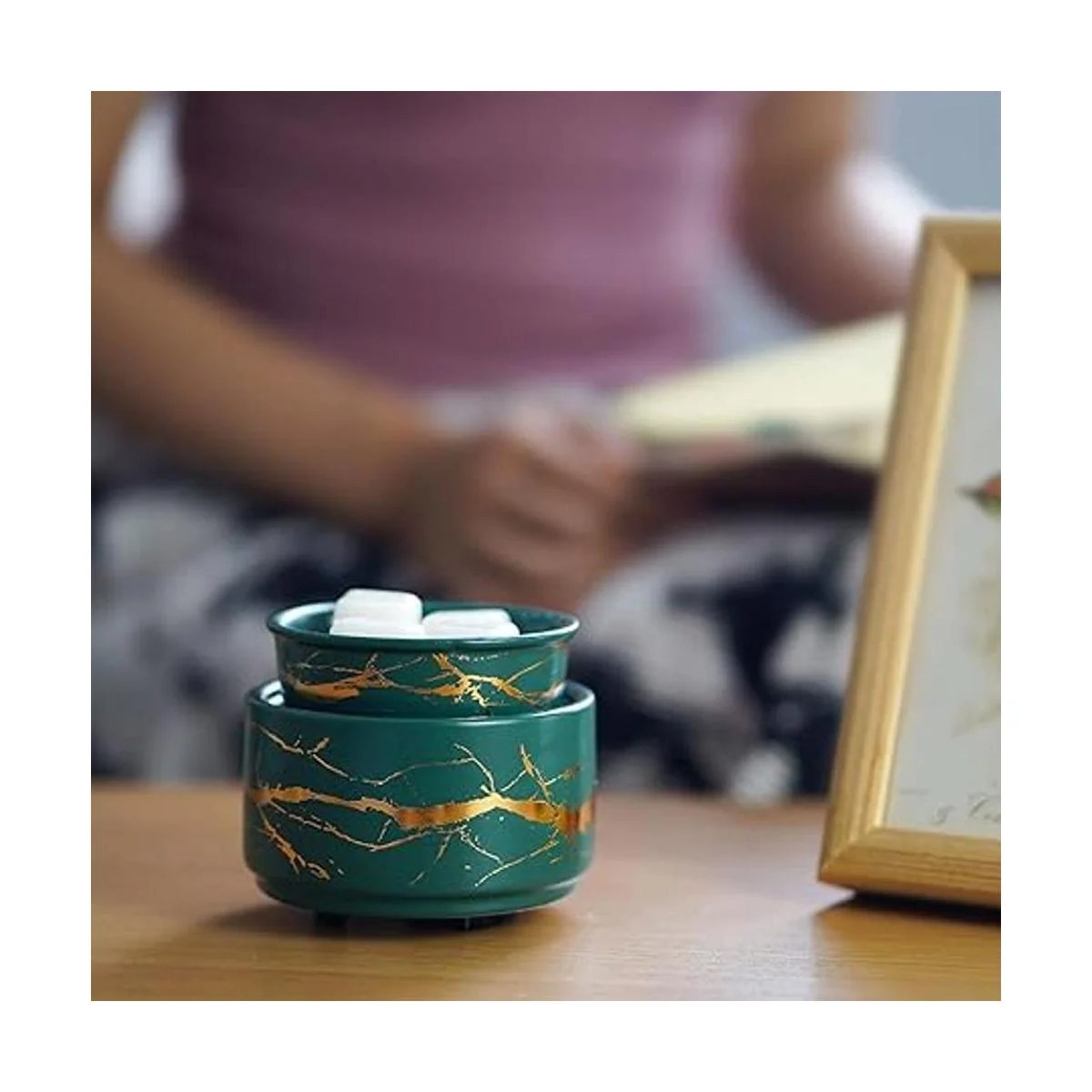 PALANCHY Calentador de cera derretida de cerámica 2 en 1, quemador de aceite eléctrico, calentador de cera, calentador de fragancia para ceras perfumadas, hogar, oficina, dormitorio, aromaterapia, regalo y decoración oro verde