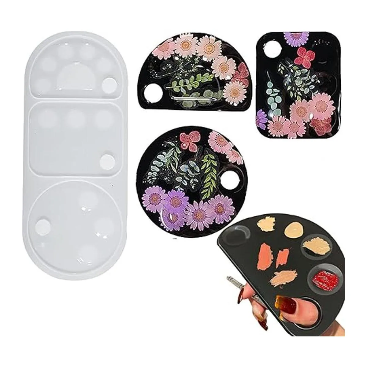Paleta de maquillaje para moldes de resina de silicona, moldes de fundición de silicona epoxi para maquillaje o pintura, soporte de paleta con 3 en 1, fabricación de bricolaje 3D hecho a mano para decoración del hogar