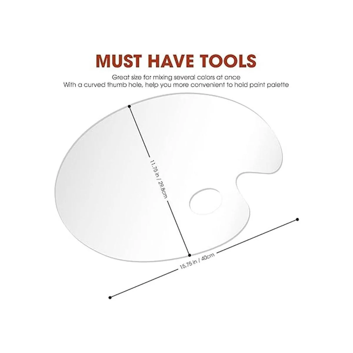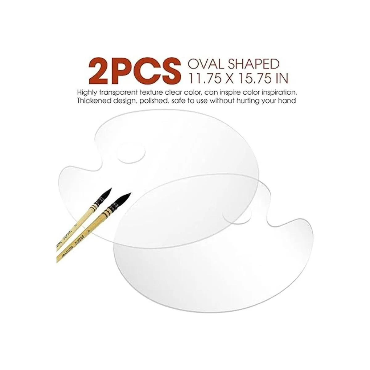 Paleta de pintura acrílica grande, 2 piezas de 15.7 x 11.8 pulgadas, bandeja de mezcla de pintura acrílica antiadherente transparente ovalada, cómoda de sostener y fácil de limpiar, para placa de pintura artística de bricolaje tamaño grande