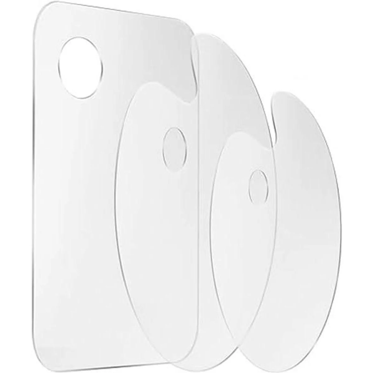 Fácil de usar y limpiar: la paleta está hecha de acrílico transparente de alta calidad, seguro y no tóxico, superficie y borde lisos, cómodo de tacto, fácil de limpiar y reutilizable. Retira el papel protector en ambos lados para obtener una paleta transparente antes de usar.