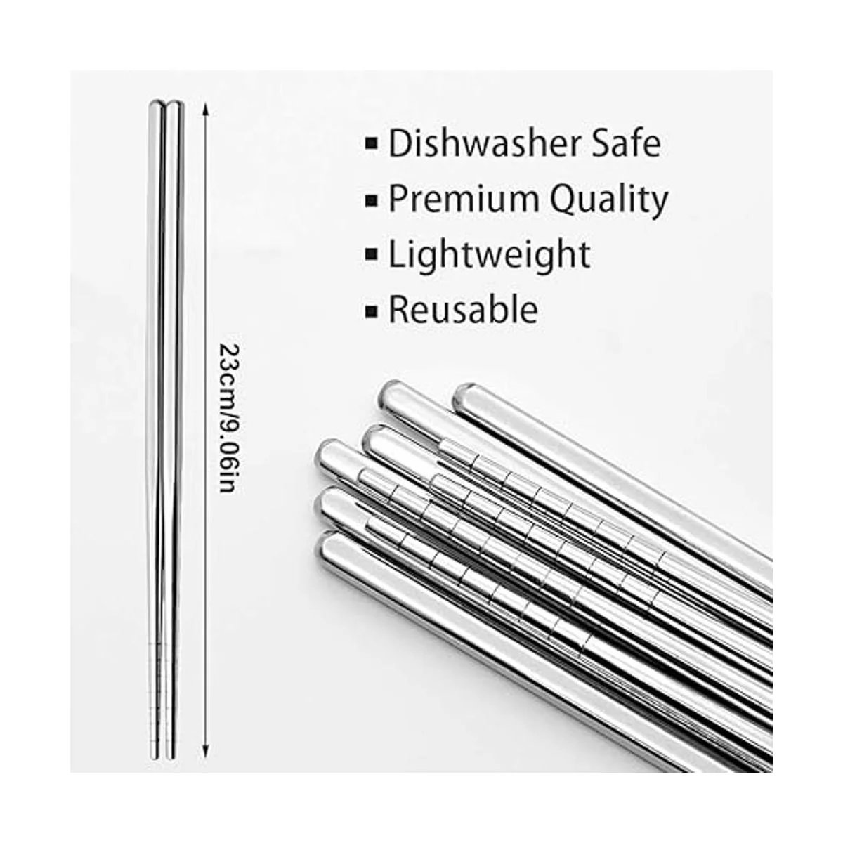 Reutilizable: Estos palillos de metal se fabrican con acero inoxidable de grado alimenticio SUS 304 que no deja regusto de metal y es más duradero y reutilizable. Es más saludable y más respetuoso con el medio ambiente que el bambú o los palillos desechables.