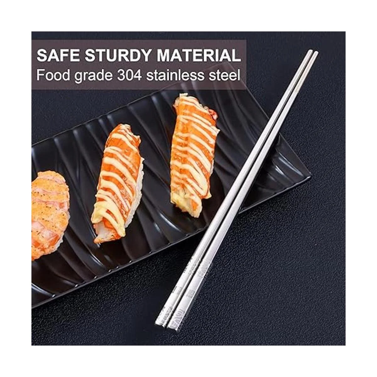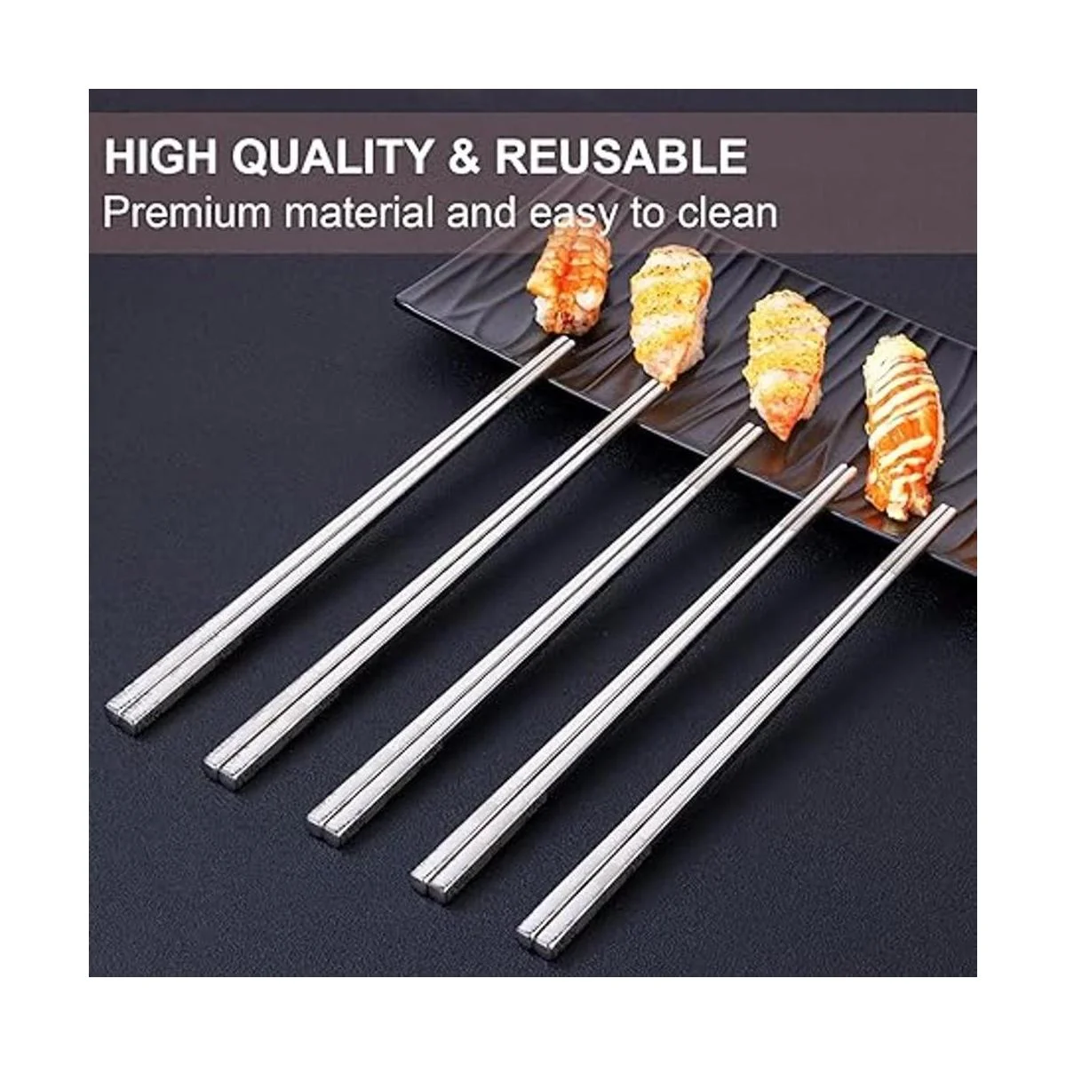 Palillos de metal reutilizables, 5 pares de palillos de acero inoxidable, aptos para lavavajillas, cuadrados, ligeros, antideslizantes, juego de regalo plateado