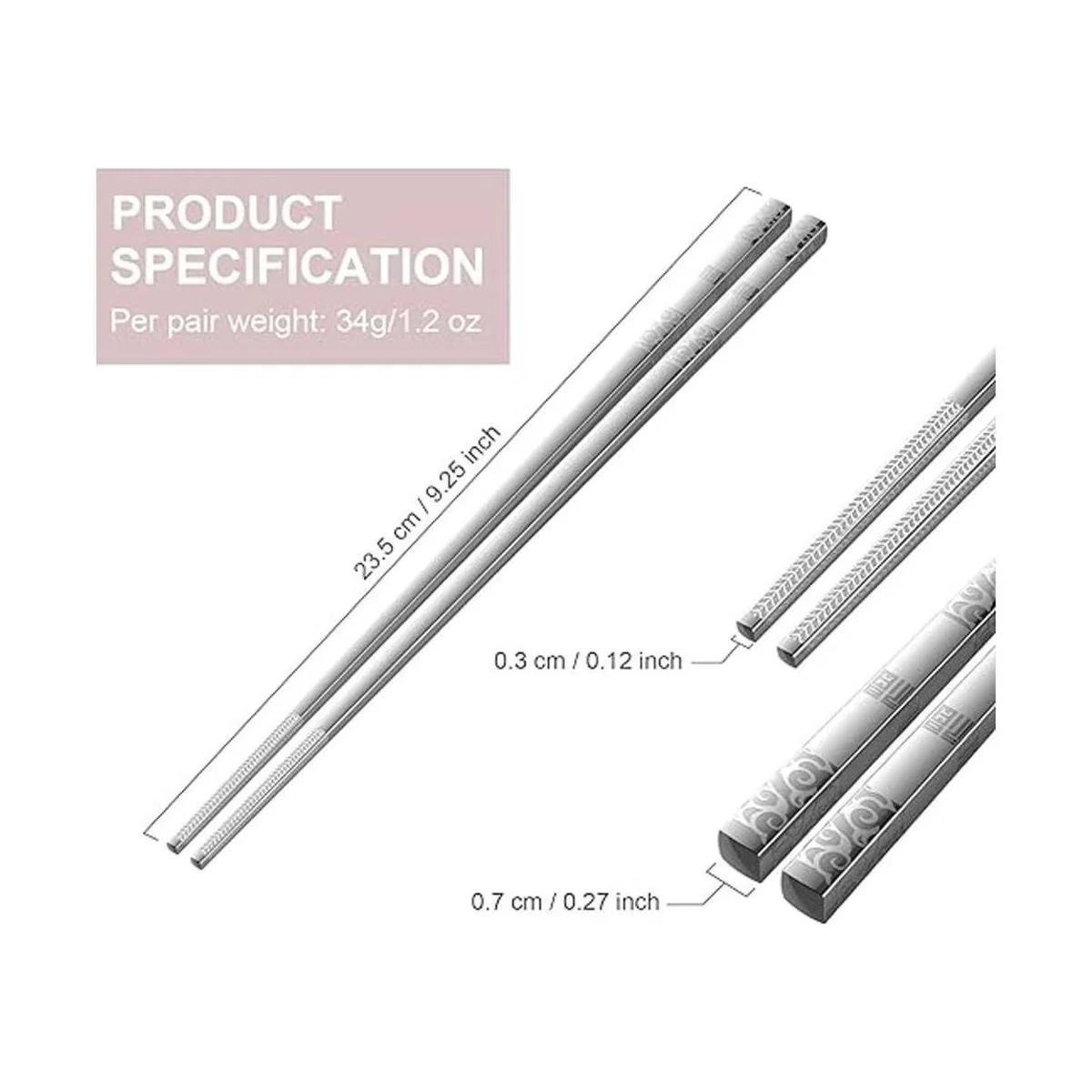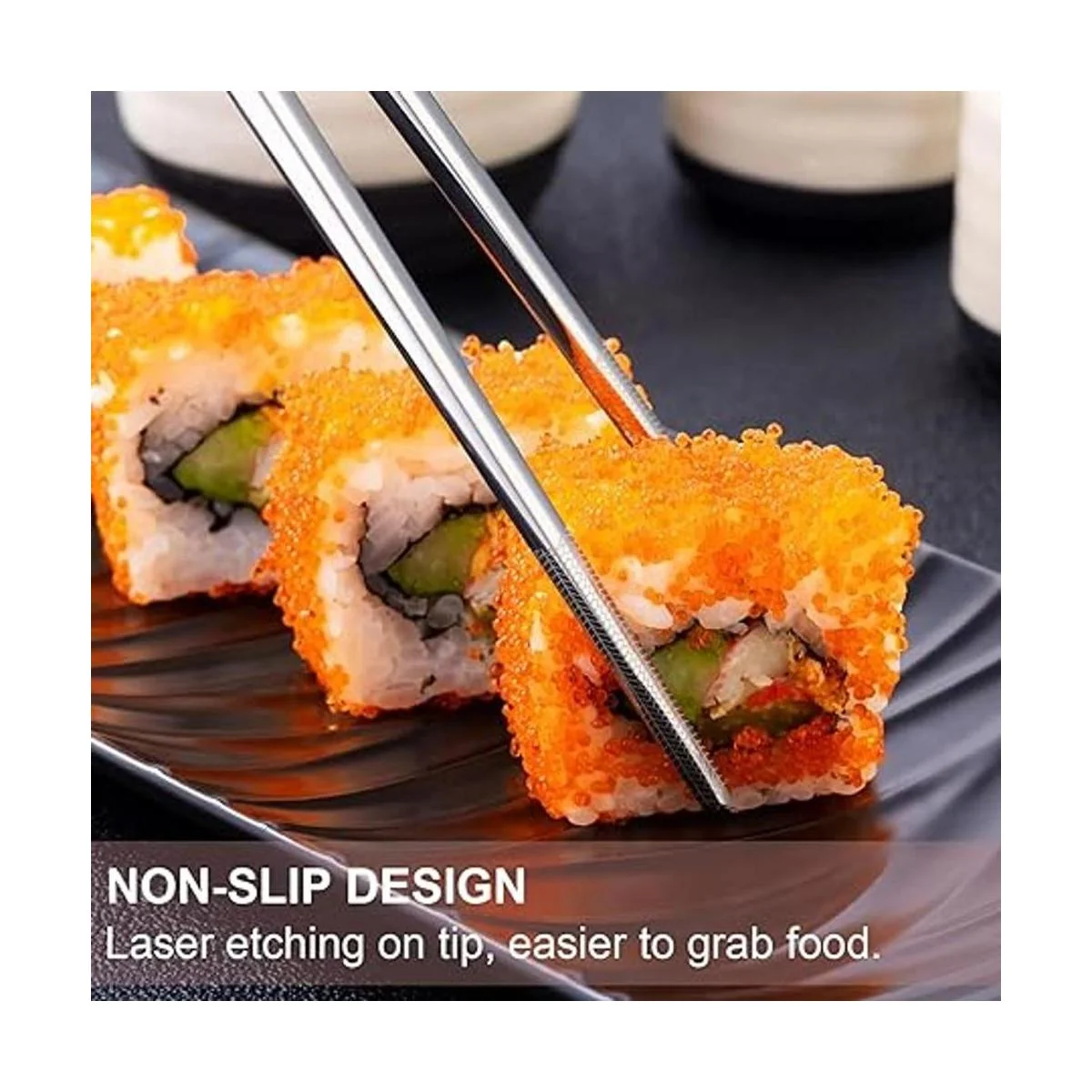 Diseño antideslizante: el grabado láser en la punta de los palillos de acero inoxidable, más fácil de agarrar alimentos. Diseño cuadrado y peso ideal, cómodo de sostener y menos rodamiento.