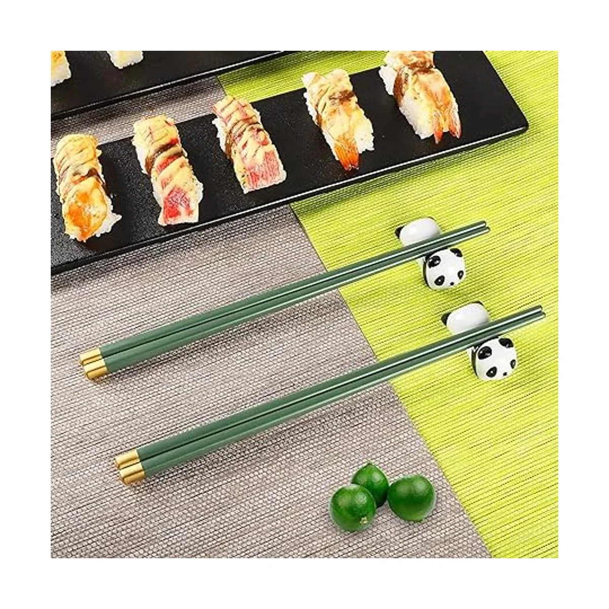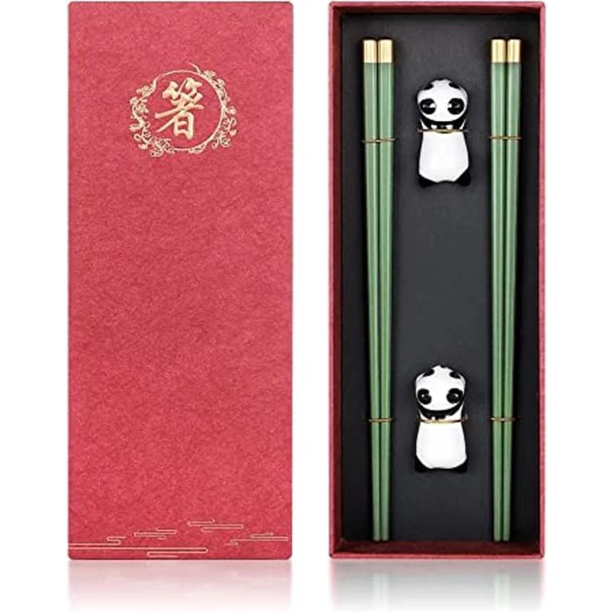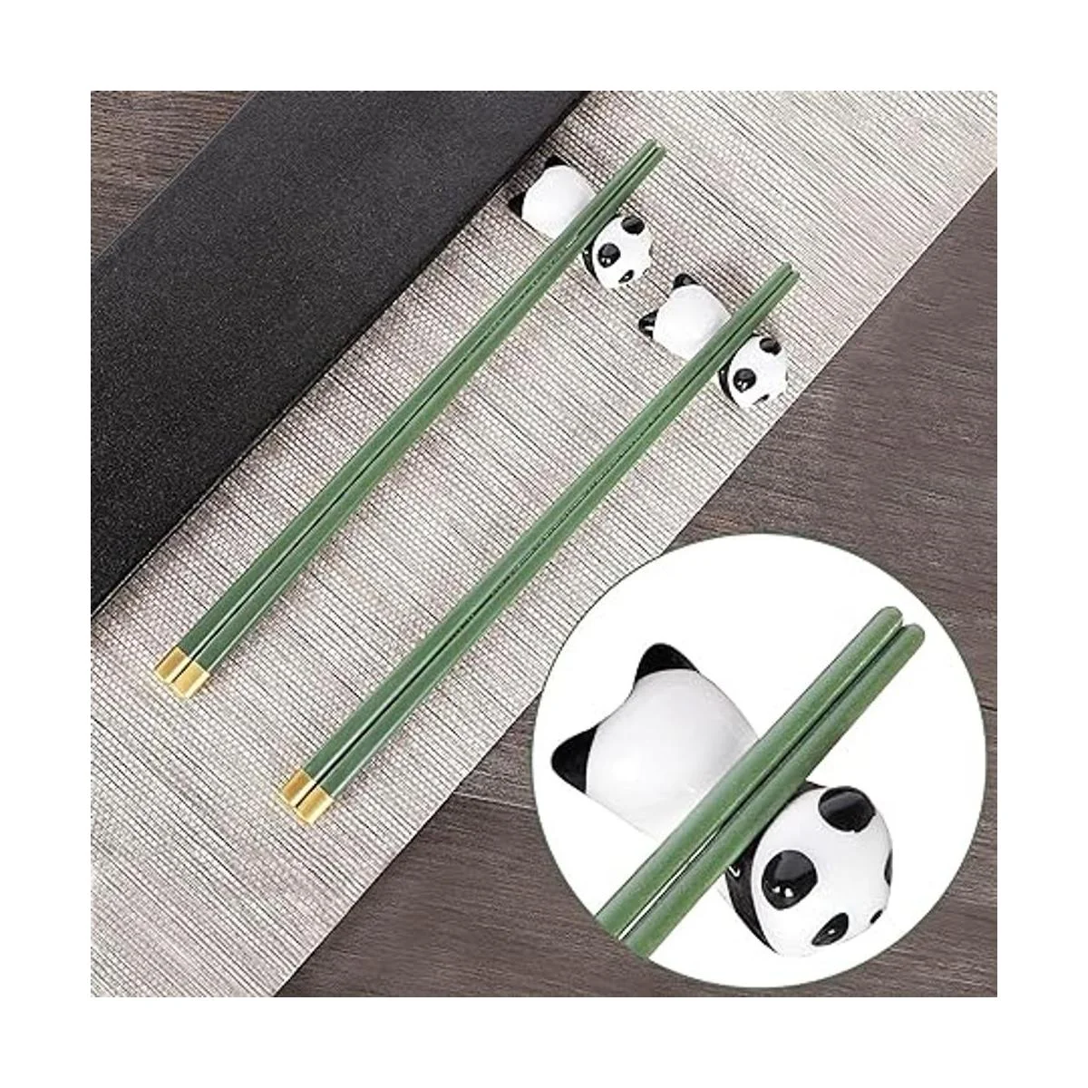 Palillos reutilizables de fibra de vidrio con soporte, juego de regalo chino japonés, juego de palillos de aleación aptos para lavavajillas soporte de cerámica lindo panda 2 pares con soporte