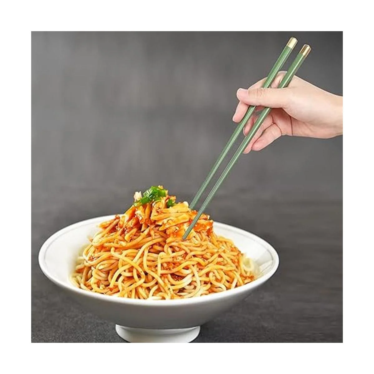 Diseño único antideslizante: la parte superior de los palillos está diseñada en oro, y todo el cuerpo de los palillos es verde, lo que corresponde al bambú favorito del panda, fresco y elegante. El cuerpo principal está hecho de fibra de vidrio de alta calidad. La parte inferior está esmerilada para evitar mejor que los alimentos se caigan. Adecuado para regalos o uso familiar.