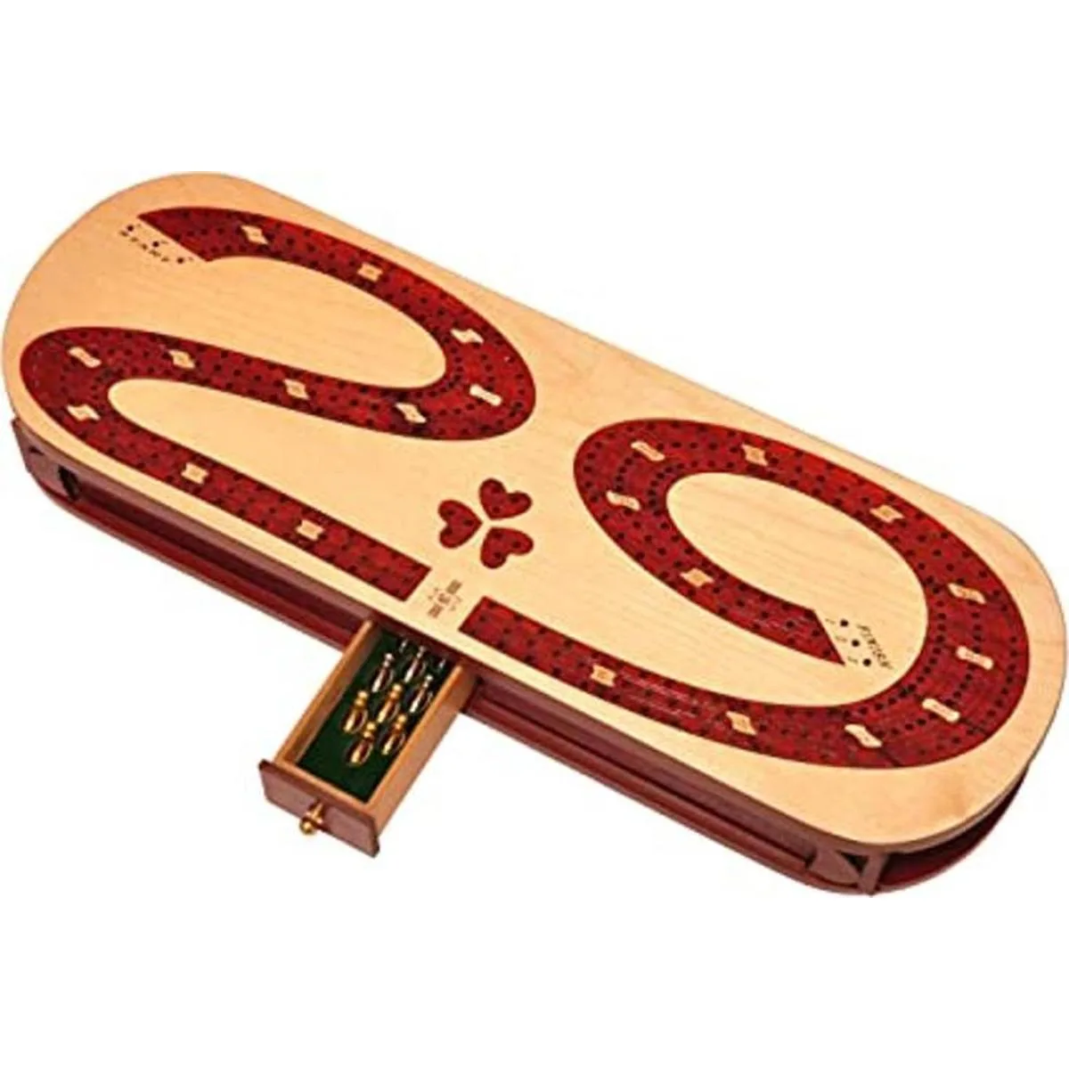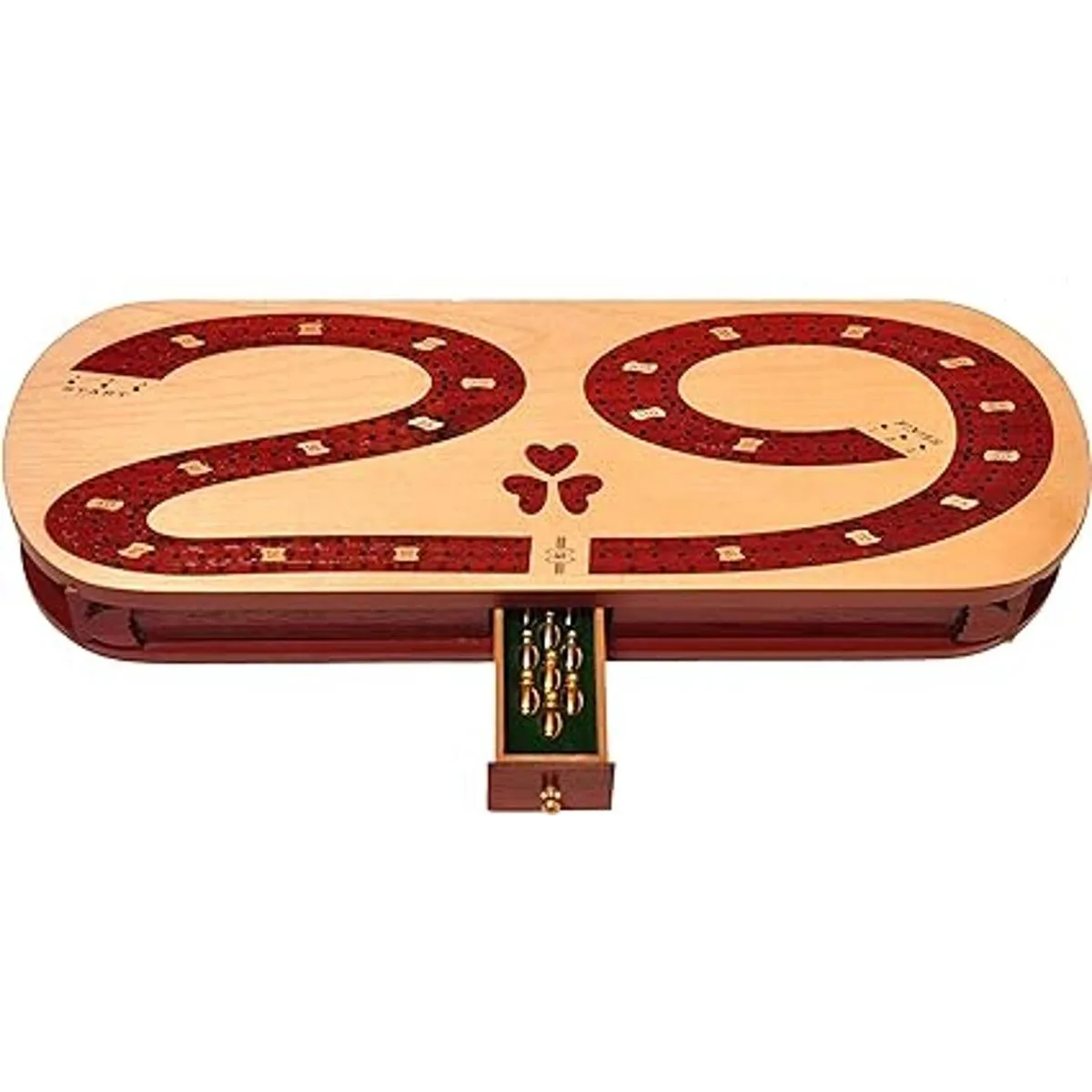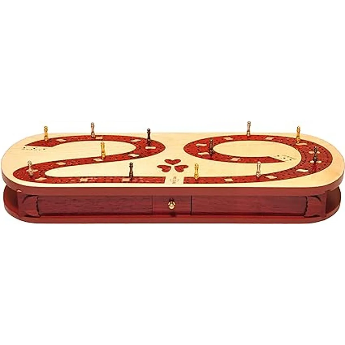 Palm Royal Handicrafts Tablero de madera de 3 pistas con incrustaciones en madera de sangre y arce. Tablero de cribbage 29. Tablero de cribbage continuo de 3 pistas