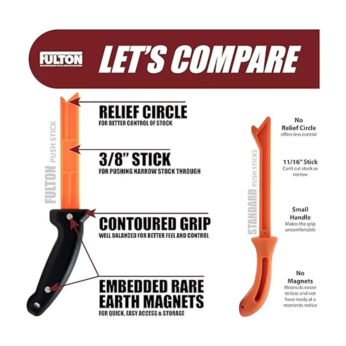 Palo de empuje de seguridad para carpintería, 2 unidades, cada uno tiene un mango contorneado integrado con dos imanes de tierras raras, ideal para empujar el bastón a través de sierras de mesa, mesas de enrutador, moldeadores y juntas.