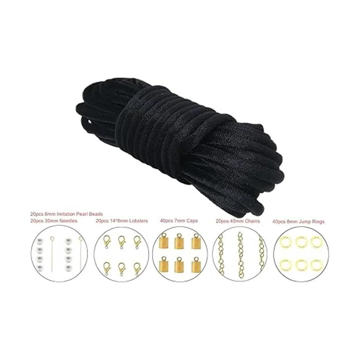 PAMIR TONG 10 yardas 0.276 in cordón de gargantilla redondo de terciopelo suave, juego de cables de tela para hacer joyas, costura, bricolaje negro