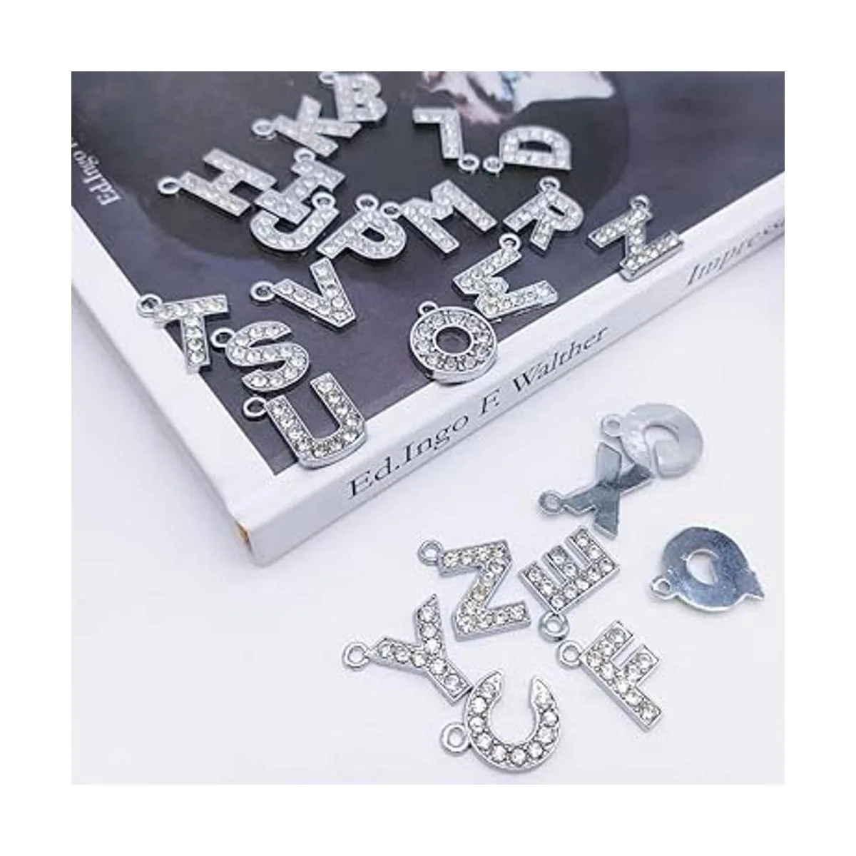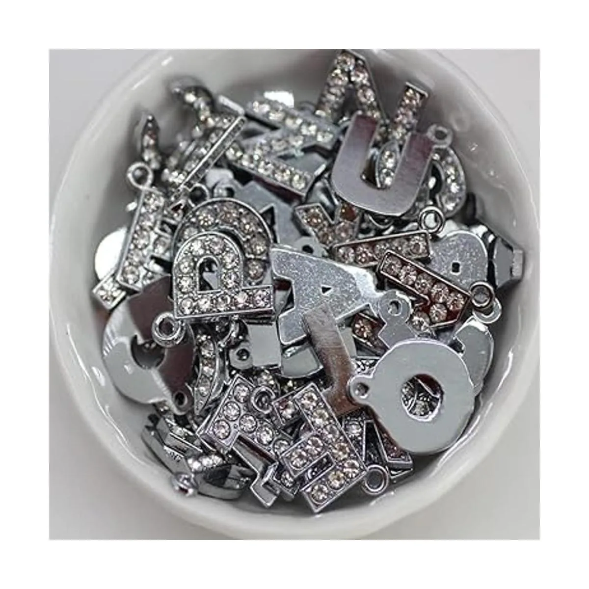 Tamaño: aproximadamente 0.551 in para letras del alfabeto con diamantes de imitación, con agujeros de 0.079 in. 0.276 in para anillos de salto.