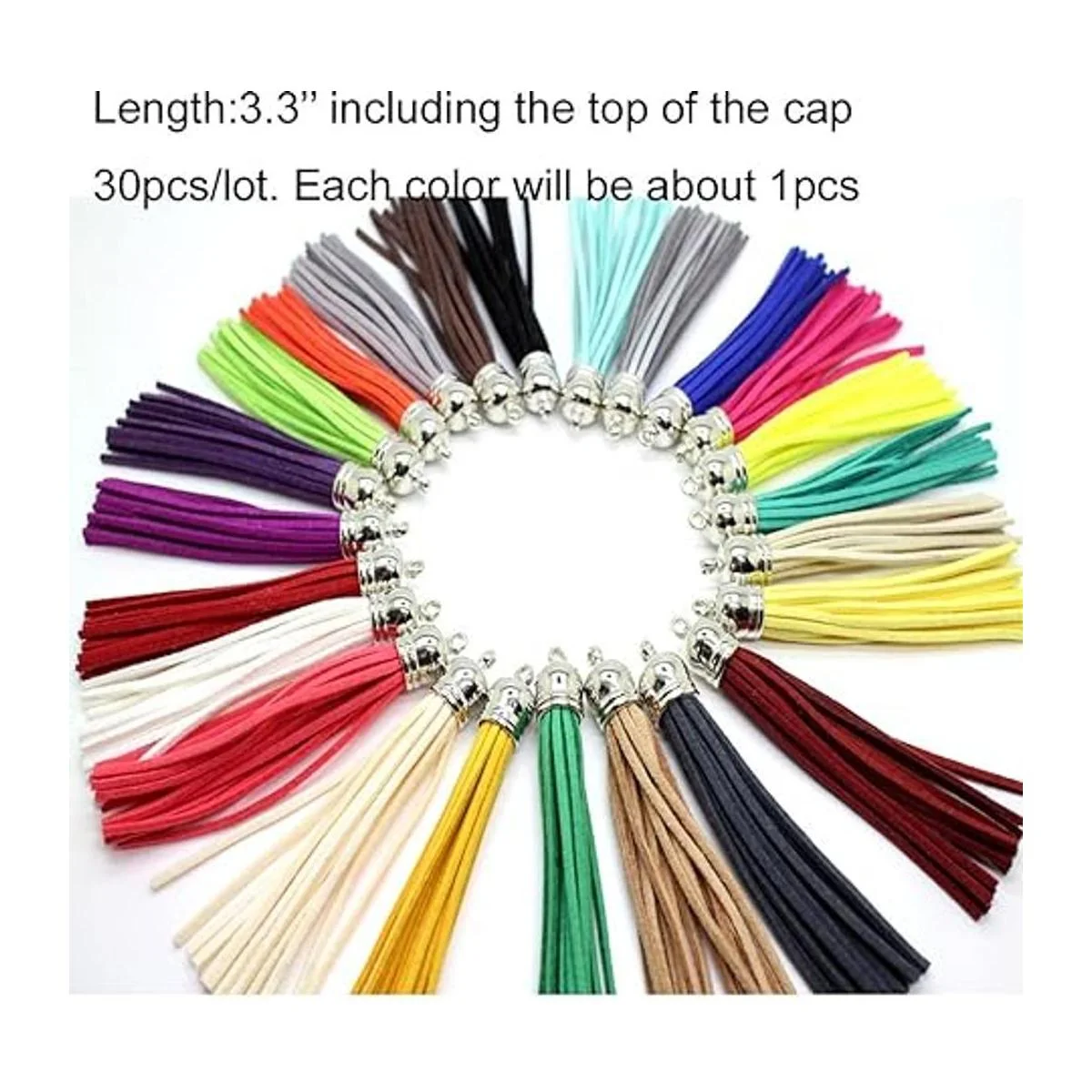 Pamir Tong 30 unidadeslote de cuero con borlas, correas para teléfono celular, aretes y collares, Ante sintético