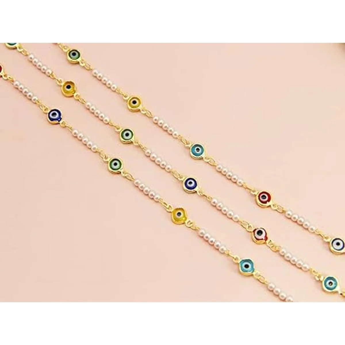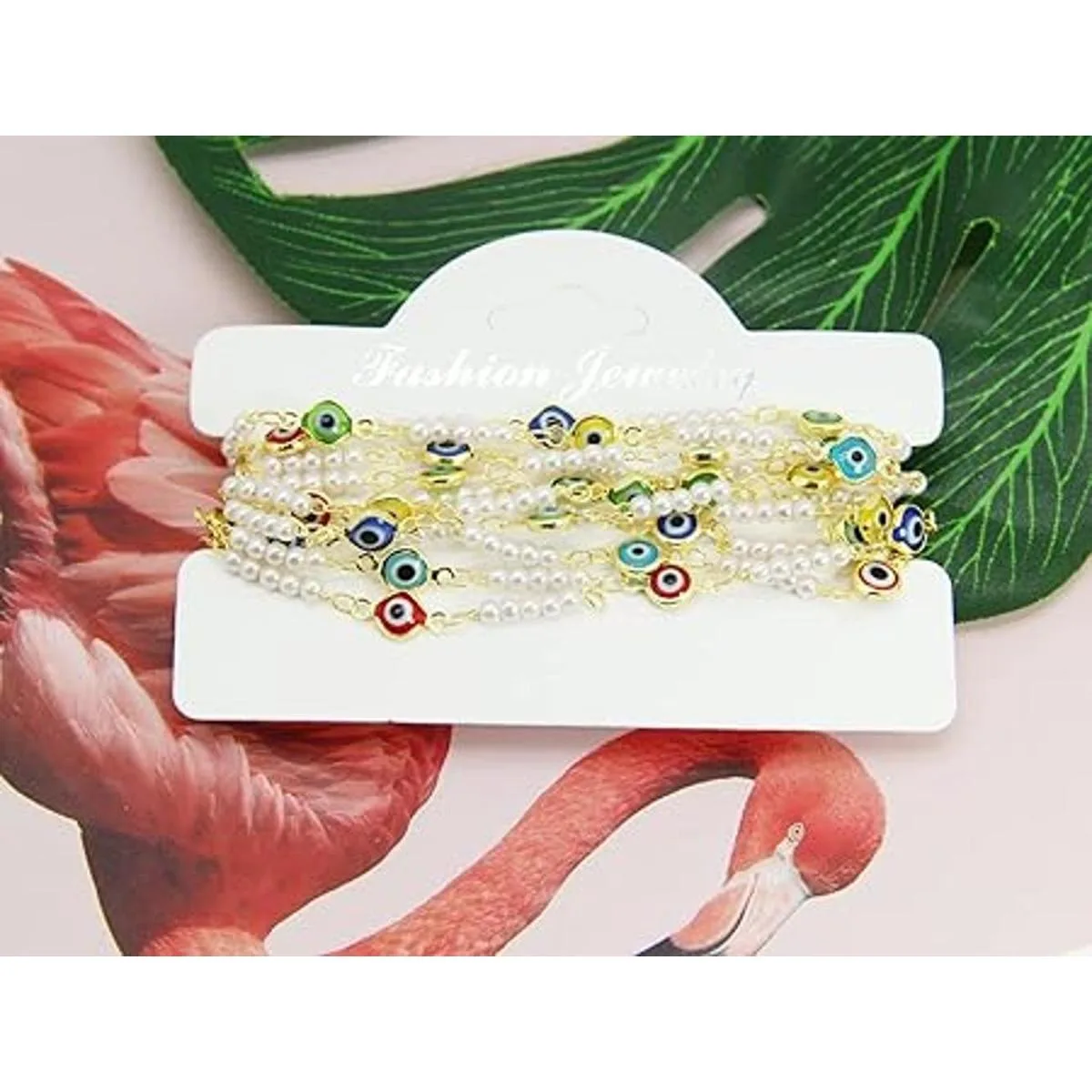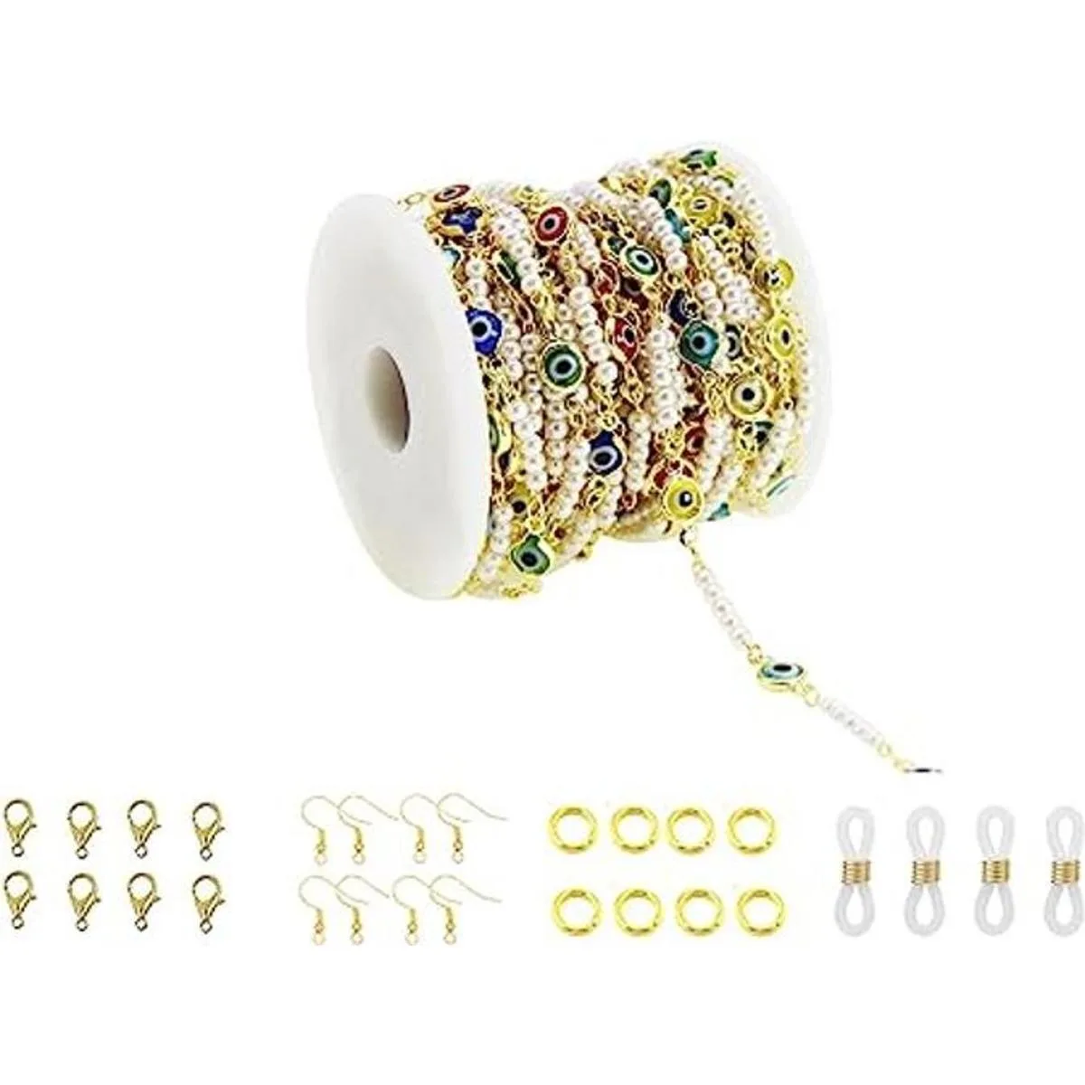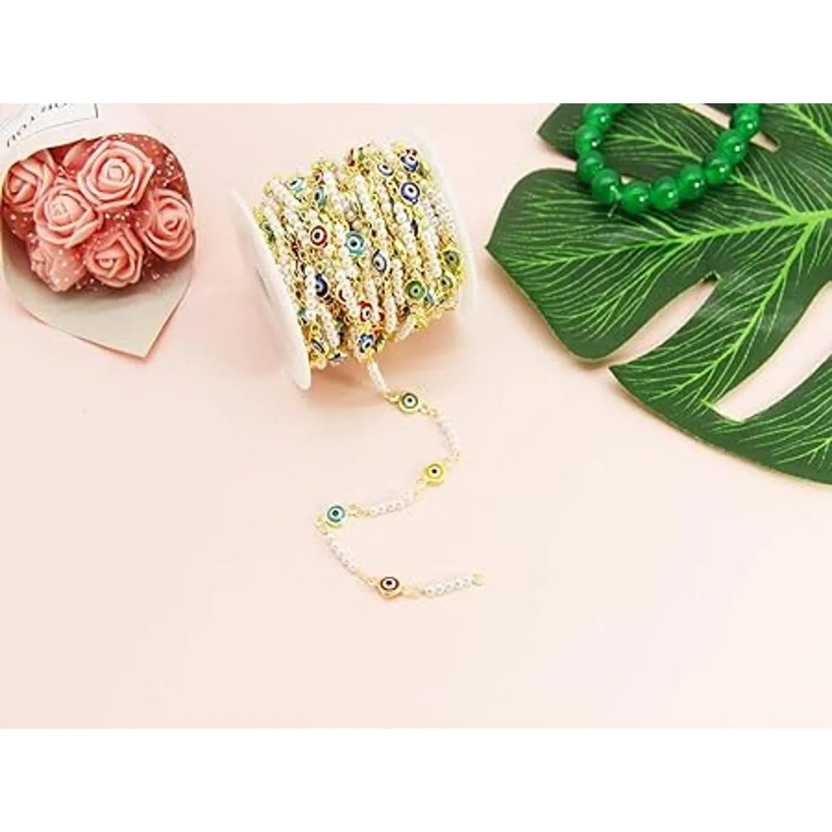 PAMIR TONG Cadena de eslabones turca hecha a mano con cuentas de ojo turco con detalles de latón chapado en oro para pulsera, collar, máscara de cristal, decoración, zapatos, ropa, fabricación de joyas CC57