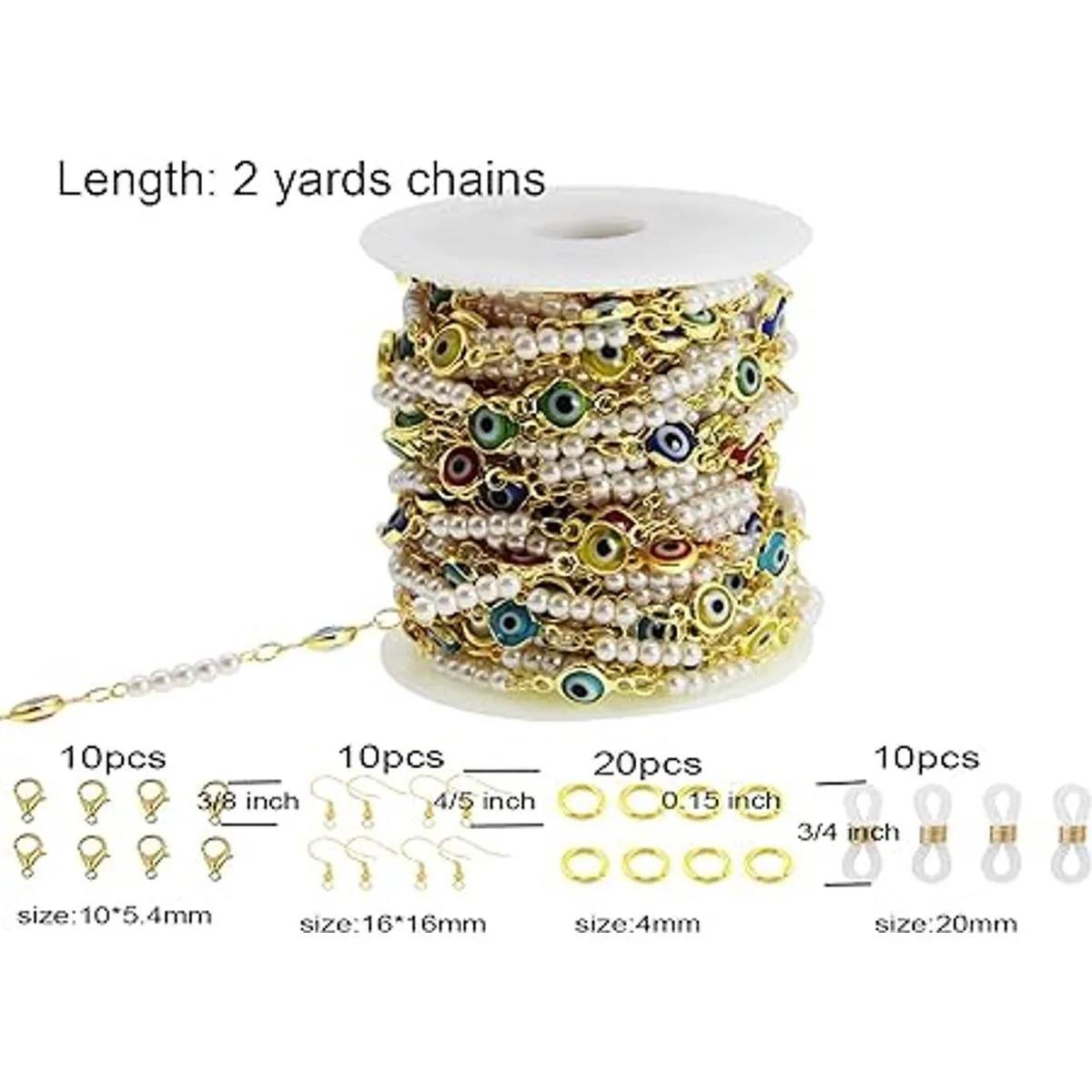 Incluye cadenas de latón de 2 yardas, 10 langostas doradas, 10 aretes de oro, 10 extremos de cadena de gafas, 20 anillos de junmp.