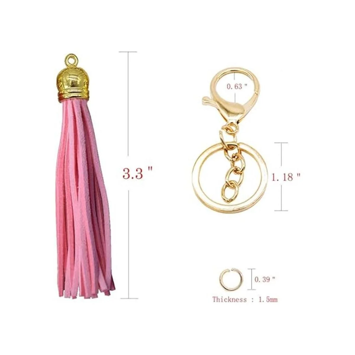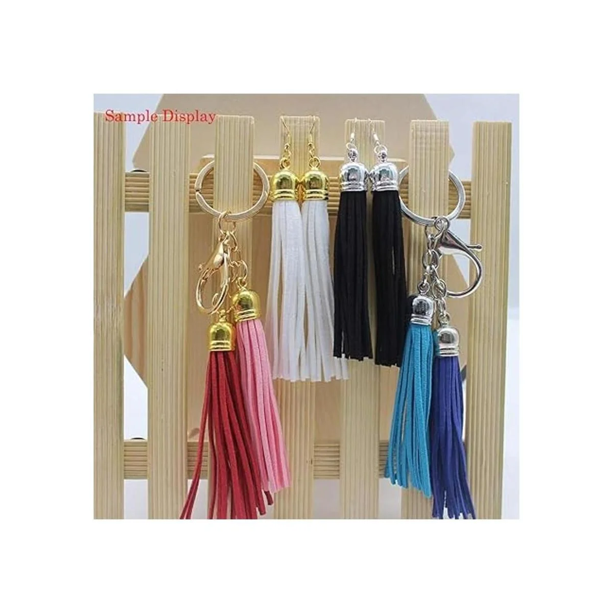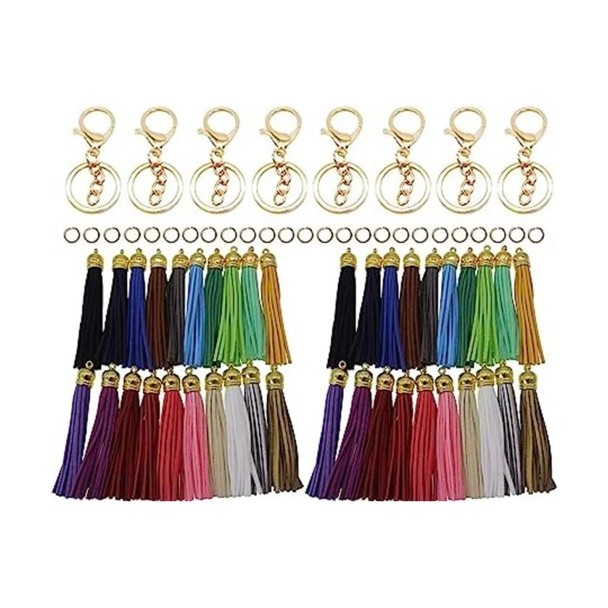 Juego de borlas largas para bricolaje: el paquete incluye 20 pares de 40 colgantes de borla de cuero coloridos, 20 llaveros y 40 anillos de salto.