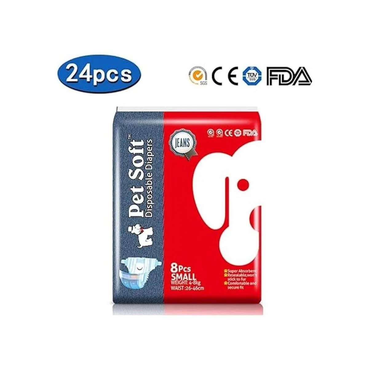 Pañales desechables para perros femeninos Dono Jeans súper absorbentes suaves para mascotas para cachorros y perros, incluyendo 24 pañales