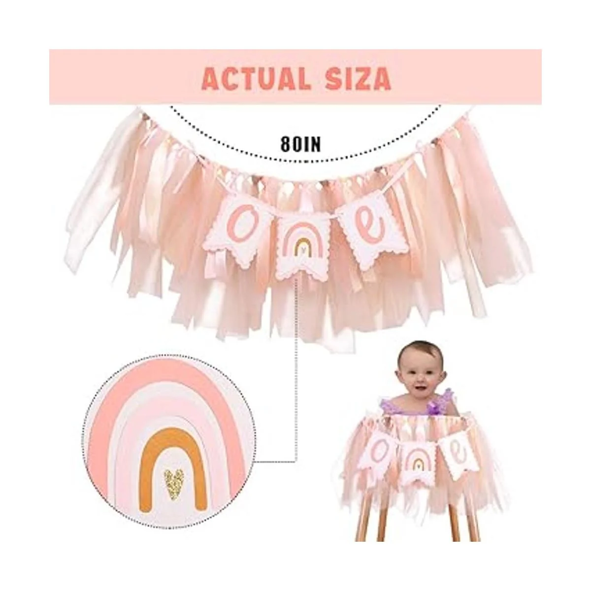 Pancarta bohemia para primer cumpleaños, pancarta bohemia para silla alta de arco iris, decoración de banderines para silla alta de primer cumpleaños, chica moderna silenciosa y neutral, accesorios para fotos de fotógrafo.