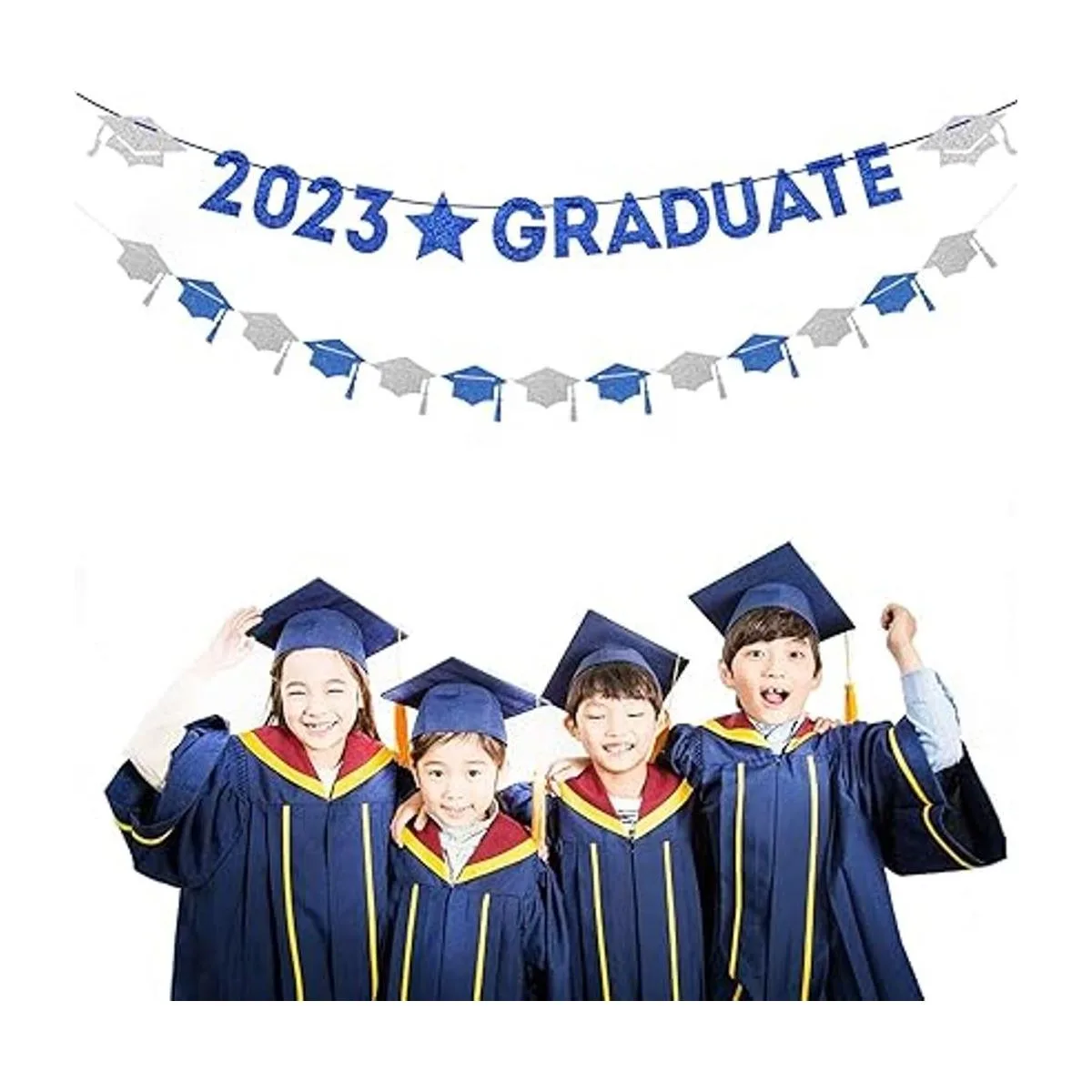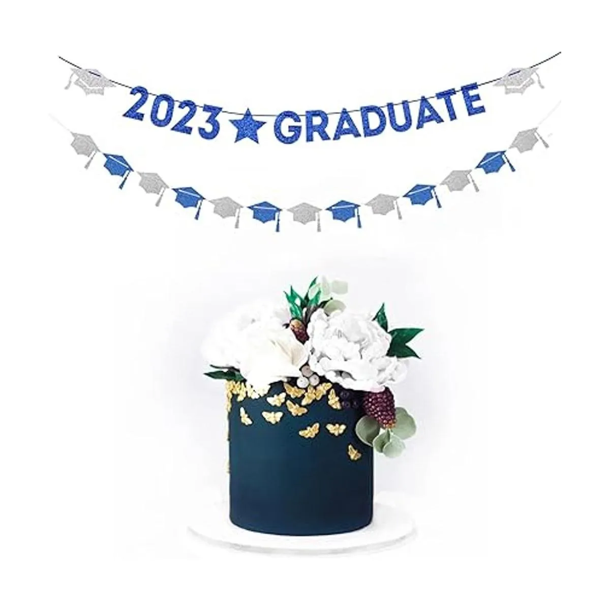 Ampliamente utilizado: son perfectos para decoraciones de graduación, decoraciones de graduación 2022, decoraciones de fiesta de graduación, suministros de fiesta de graduación, decoraciones de gorra de graduación, decoraciones de fiesta azul y plateada.