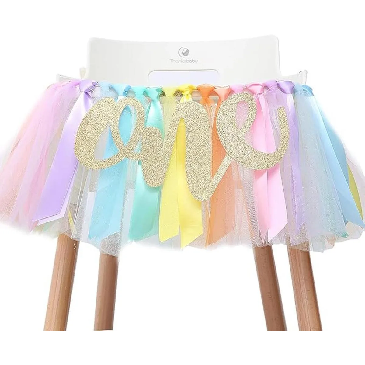 Pancarta de silla alta de arcoíris pastel para primer cumpleaños, suministros de fiesta para falda tutú de silla alta, primer cumpleaños con un banderín, decoraciones de cumpleaños de arcoíris para niñas pancarta de arcoíris