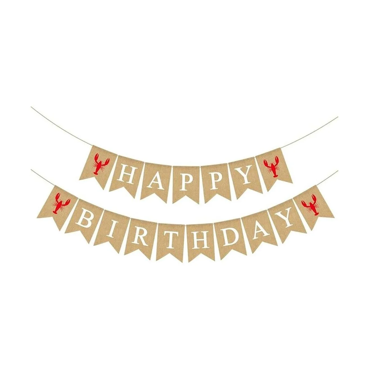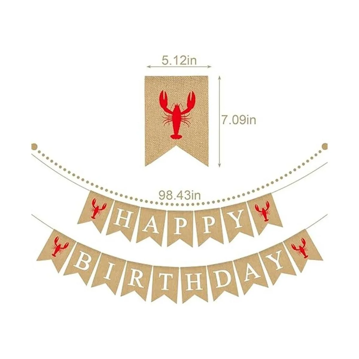 Pancarta rústica de yute de arpillera con diseño de cangrejos de feliz cumpleaños para verano