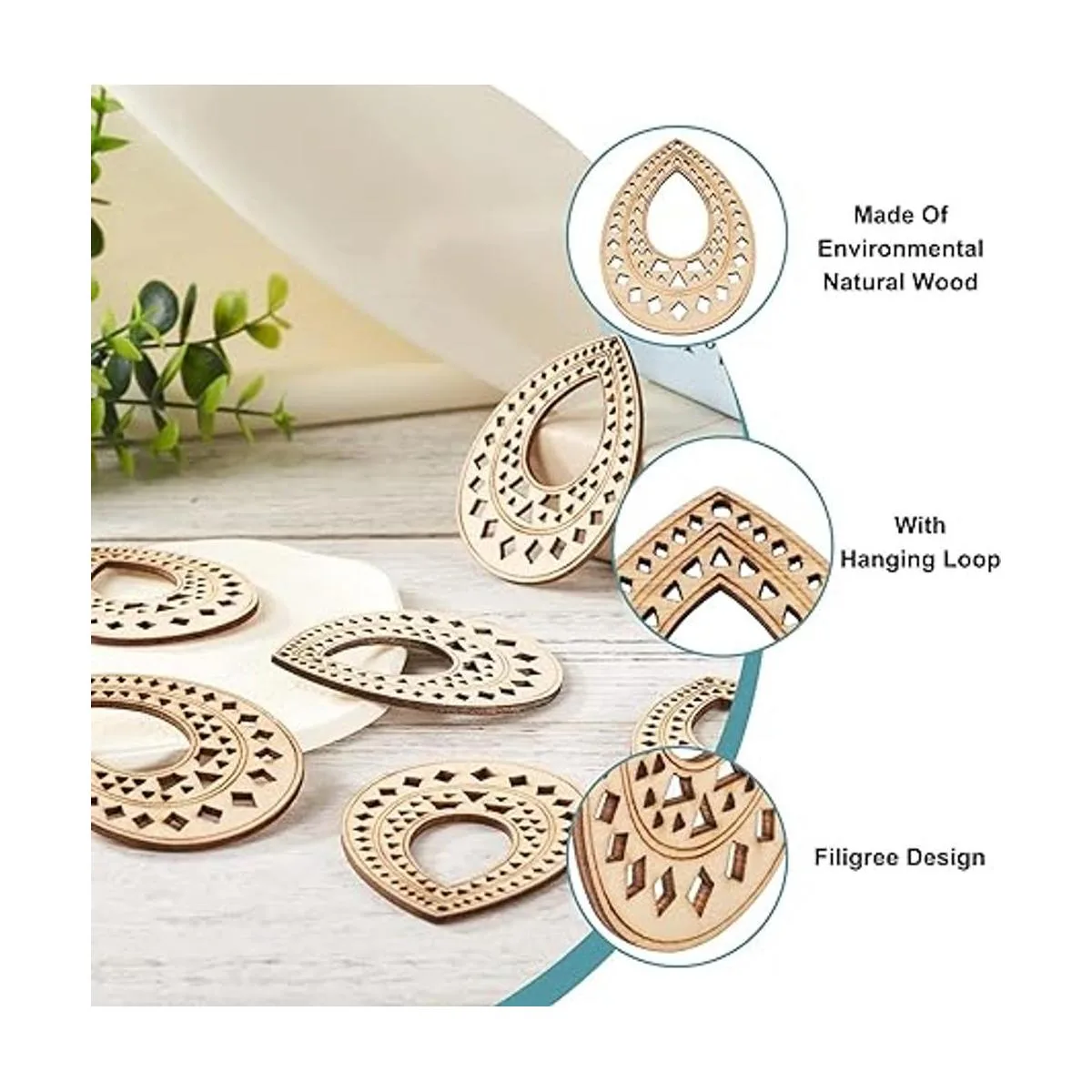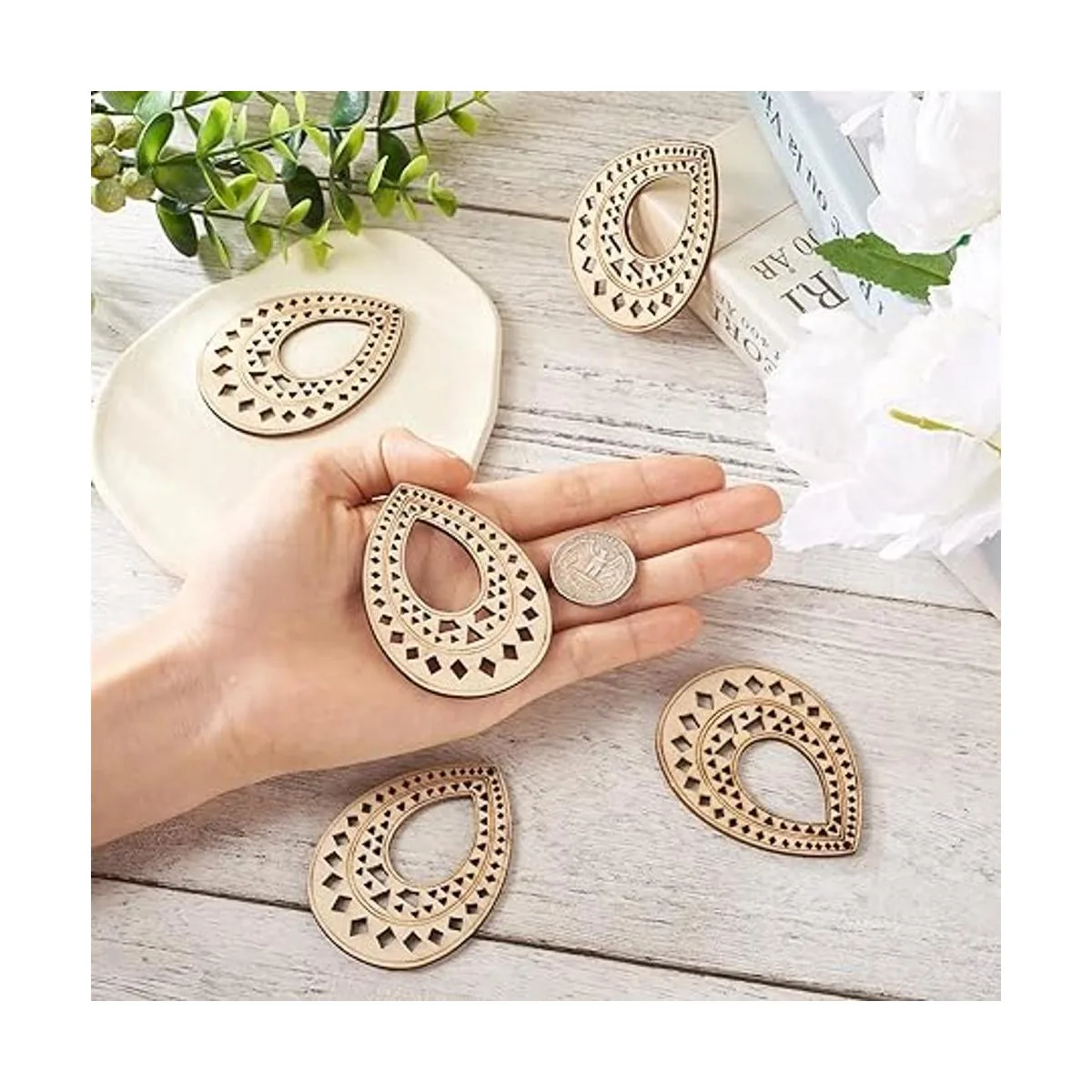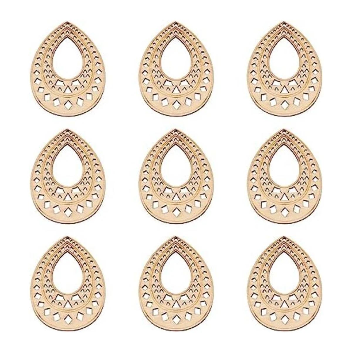 Colgantes de madera sin acabar, lágrima de filigrana, 10 unidades