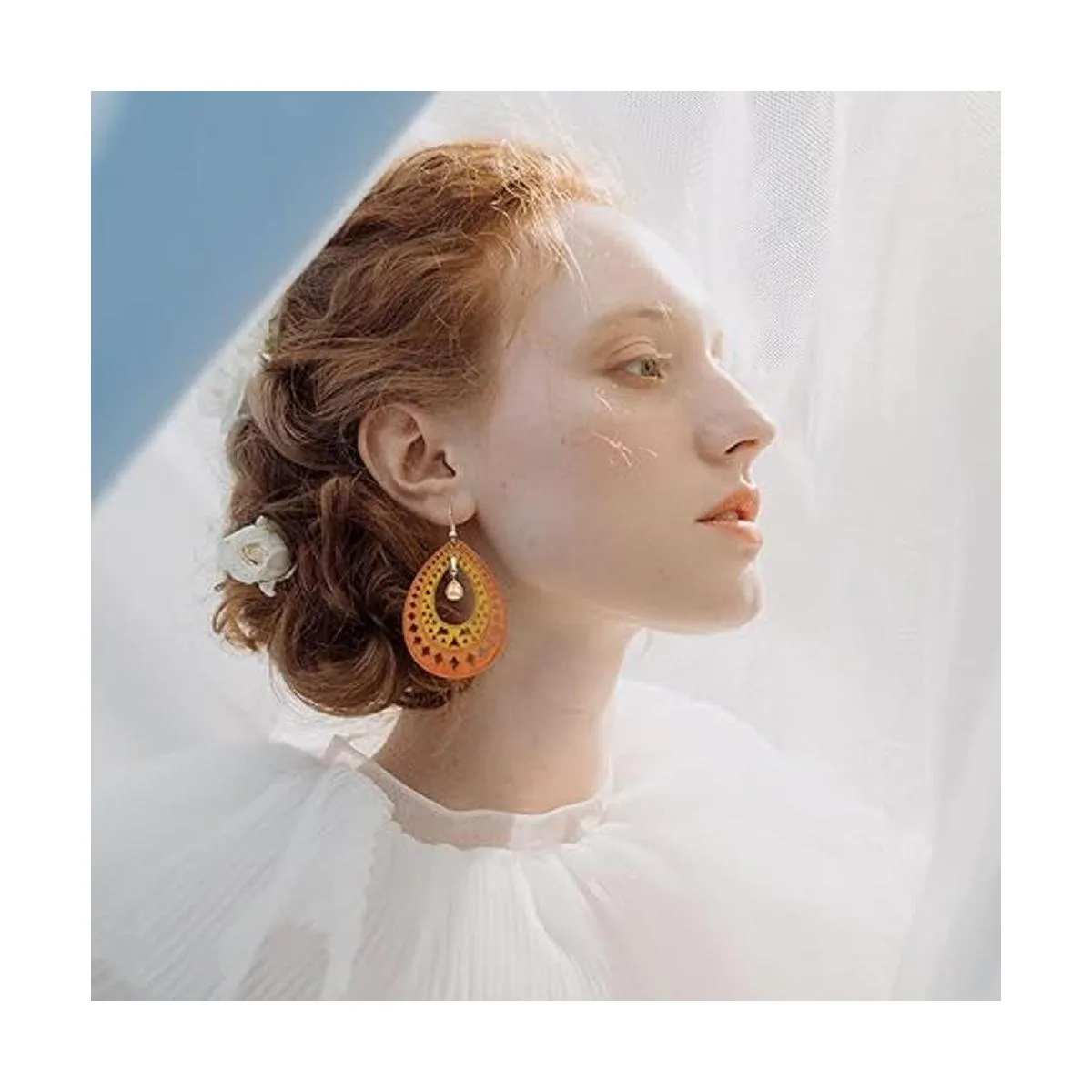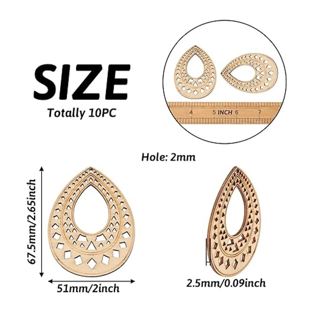 Pandahall 10 aretes de lágrima de madera natural, en blanco, ligero, de filigrana de madera grande, colgantes colgantes para aretes llamativos, suministros para hacer joyas, mujeres, niñas, 2.6 x 2 pulgadas