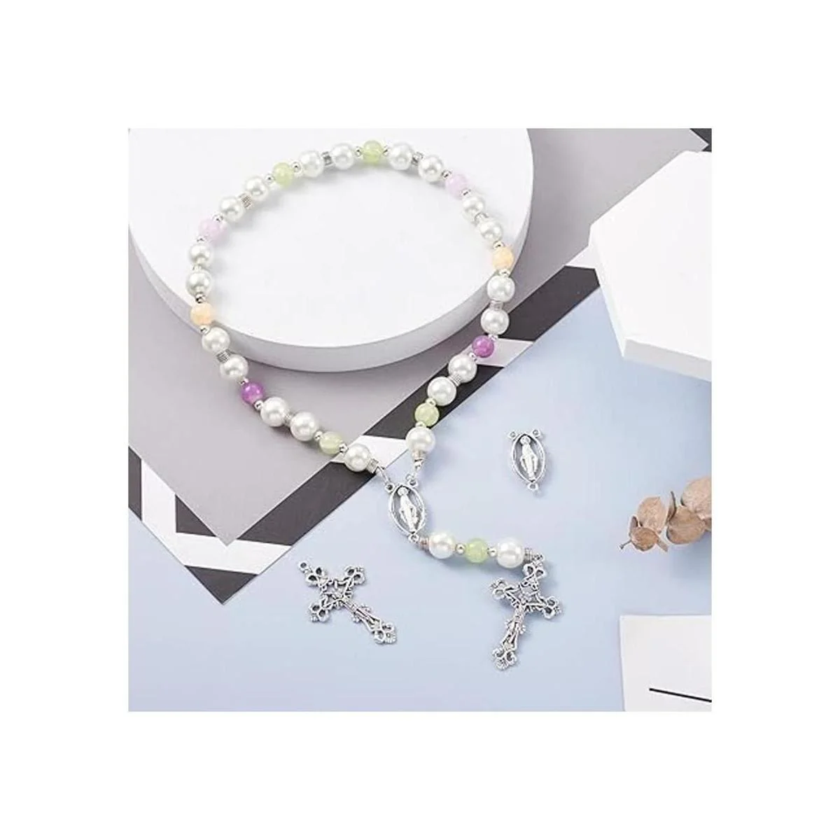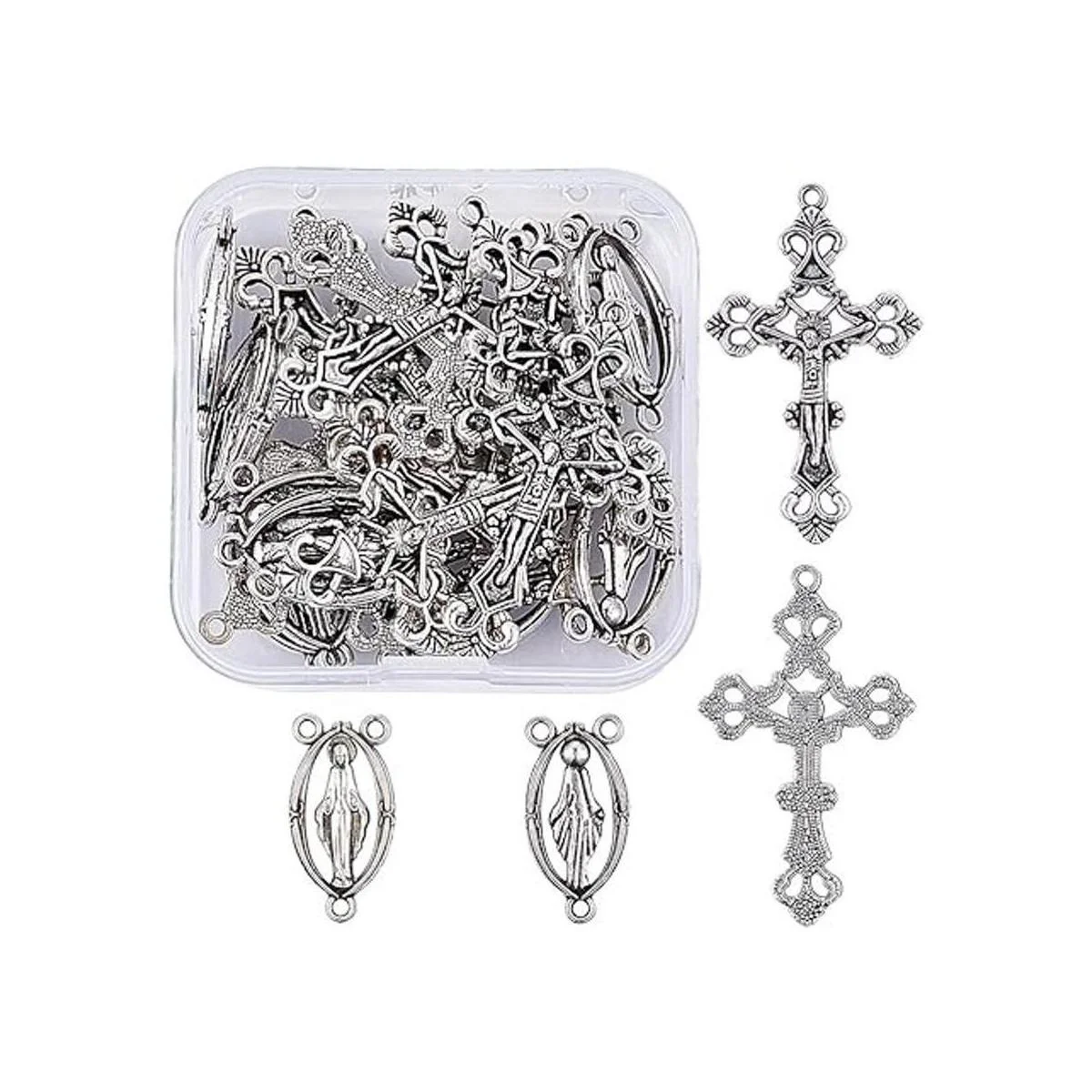 Cross pendant and Virgin links create a well combination to make rosary bead necklaces.