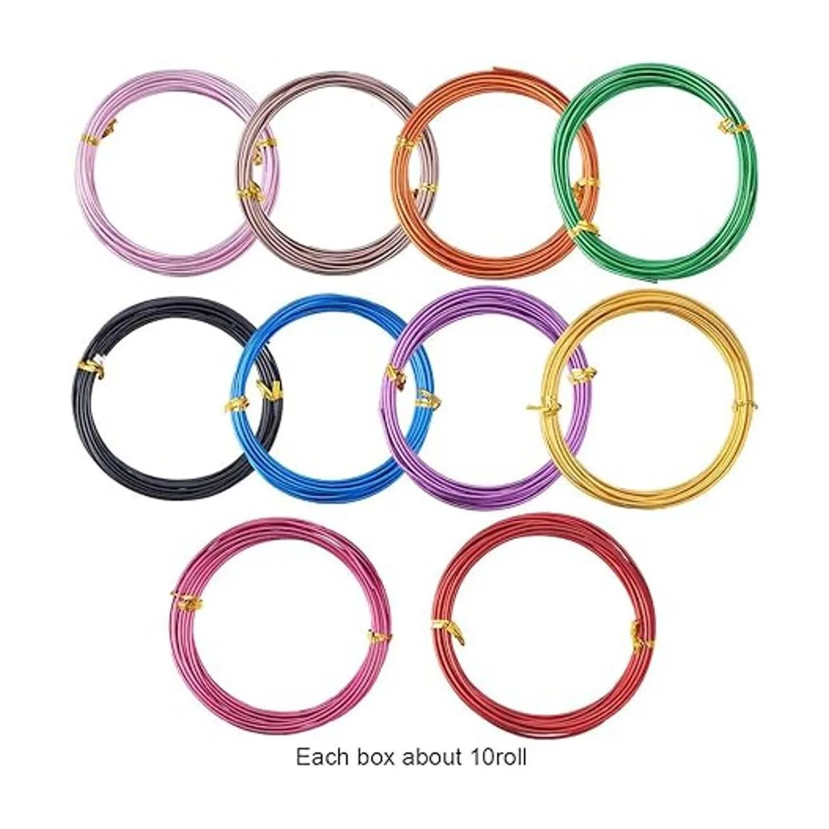 PandaHall 10 rollos de alambre de aluminio para manualidades, calibre 12, flexible, de color floral, para hacer manualidades, cada rollo de 16 pies, colores aleatorios