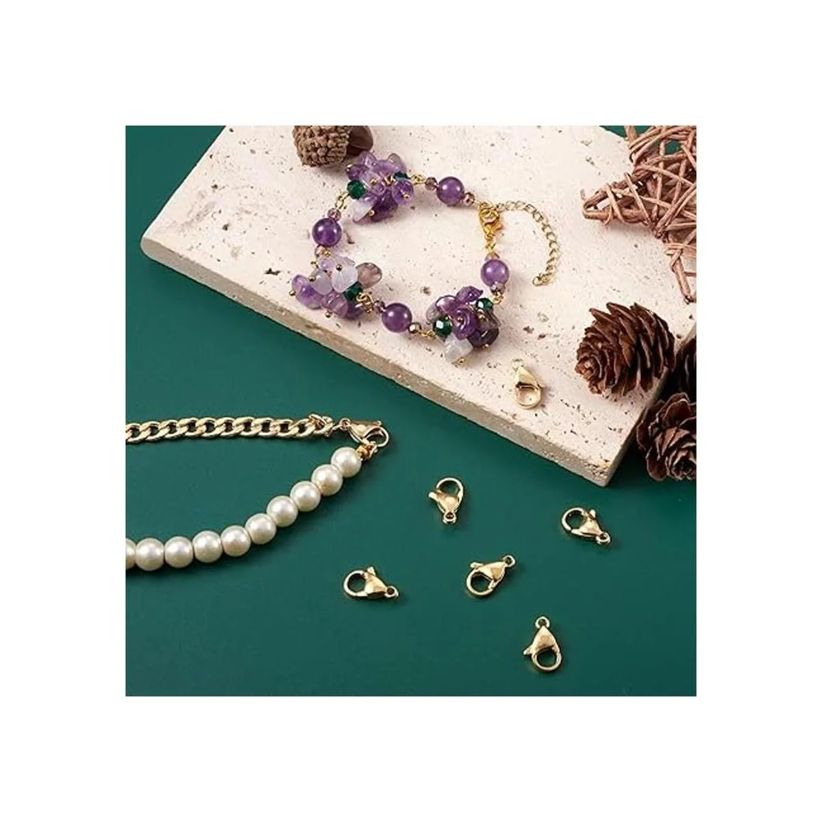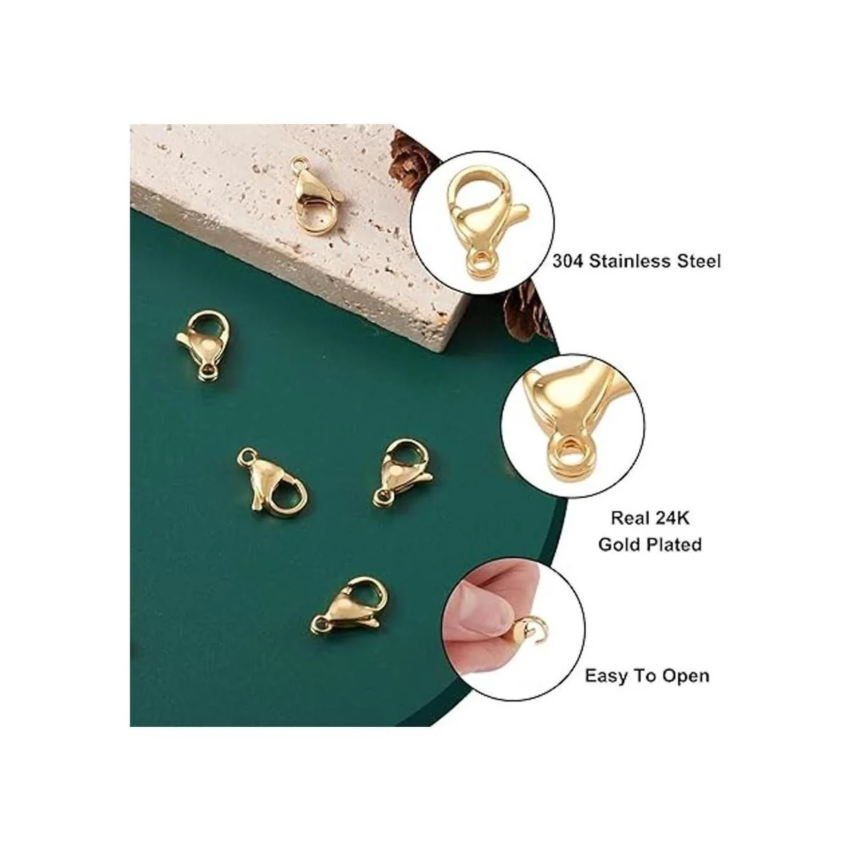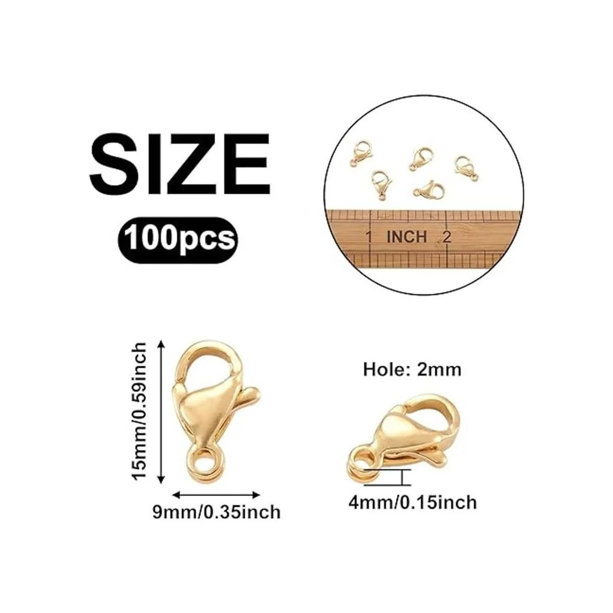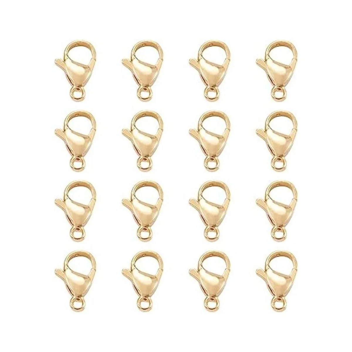 Pandahall 100 cierres de garra de langosta de acero inoxidable 304, chapados en oro de 18 quilates de 0.591 x 0.354 x 0.157 in, conectores de joyería para hacer pulseras, collares, joyas