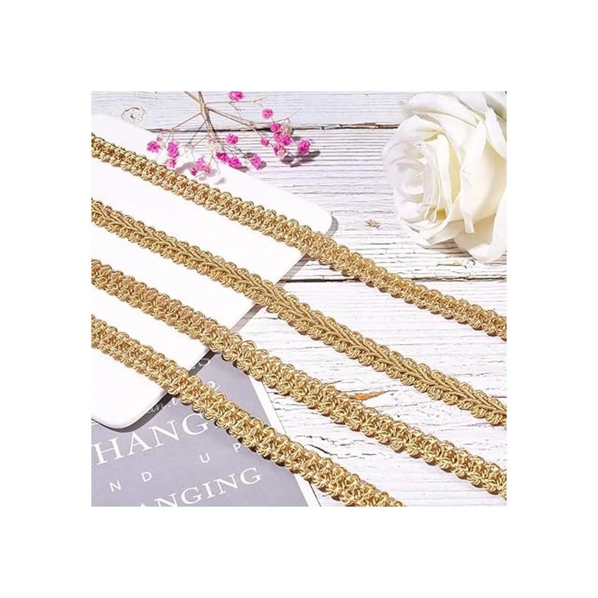 El paquete incluye: 14 yardas de ribete trenzado con hermoso patrón de desplazamiento.