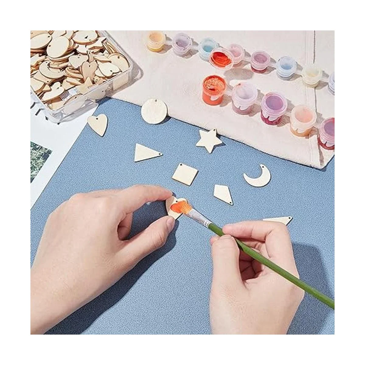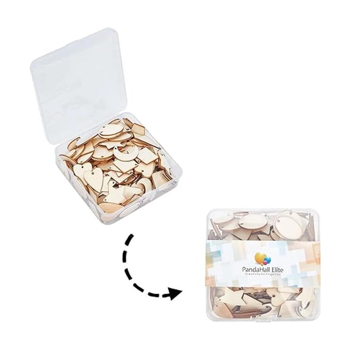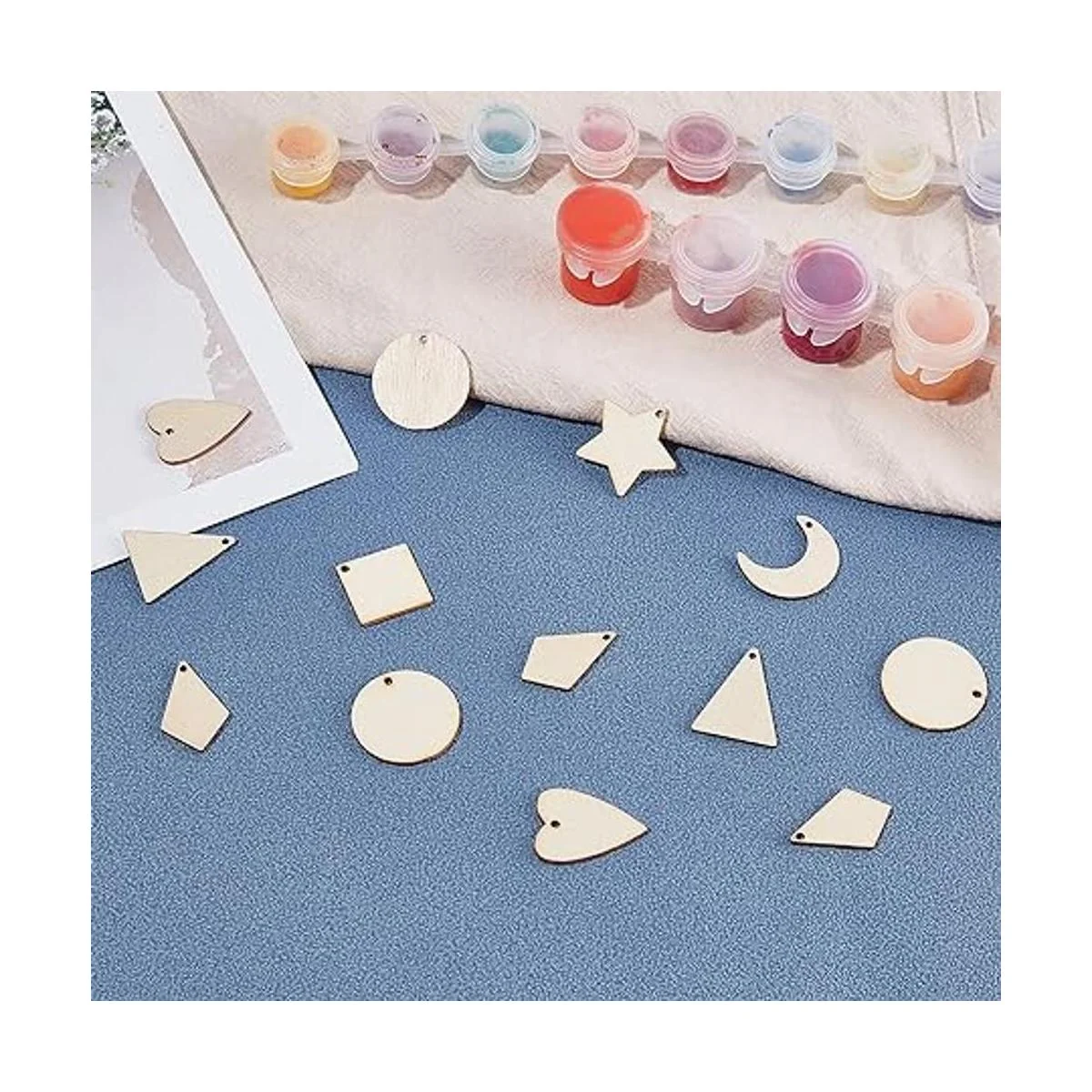 Cantidad suficiente: el paquete viene con 160 piezas de colgantes de madera sin teñir en 8 estilos diferentes: luna, estrella, redondo, rombo, ovalado, cometa, triángulo, corazón. Cantidad suficiente para manualidades con imaginación.