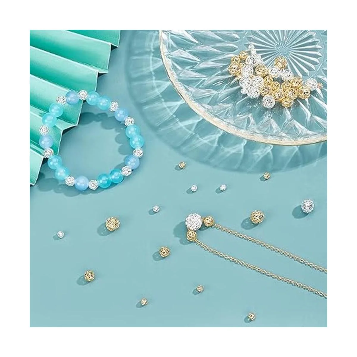 Material de alta calidad: el latón proporciona una buena formabilidad, alta capacidad de trabajo y durabilidad, y resistencia a la corrosión en comparación con otras aleaciones de metal. Y todas las cuentas están chapadas con plata y oro de 18 quilates, brillante y delicado.