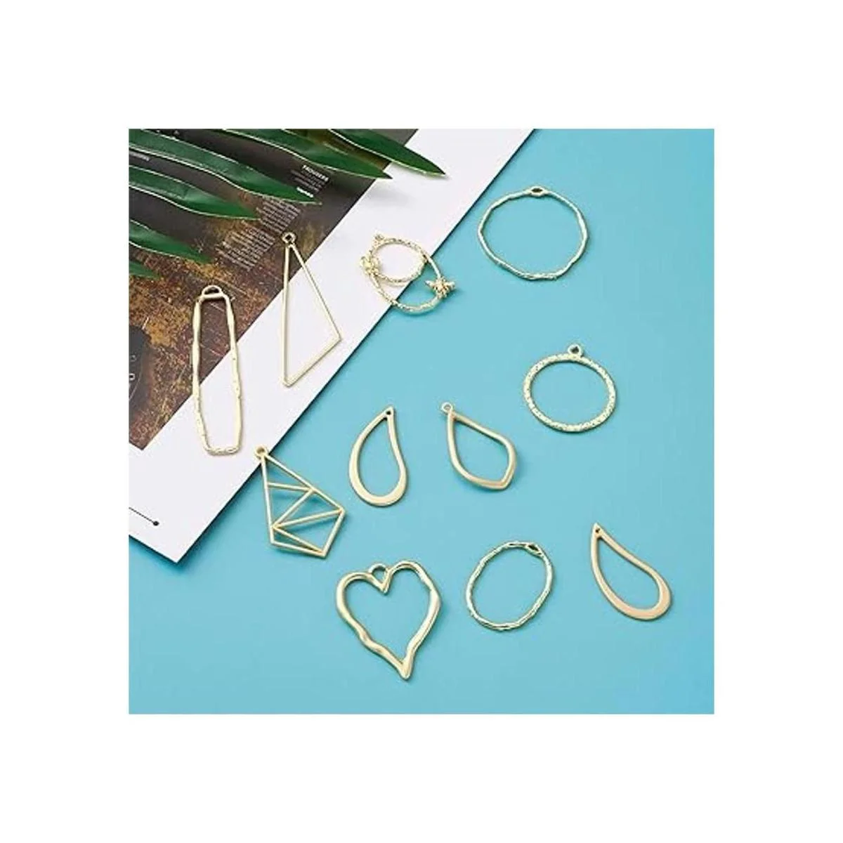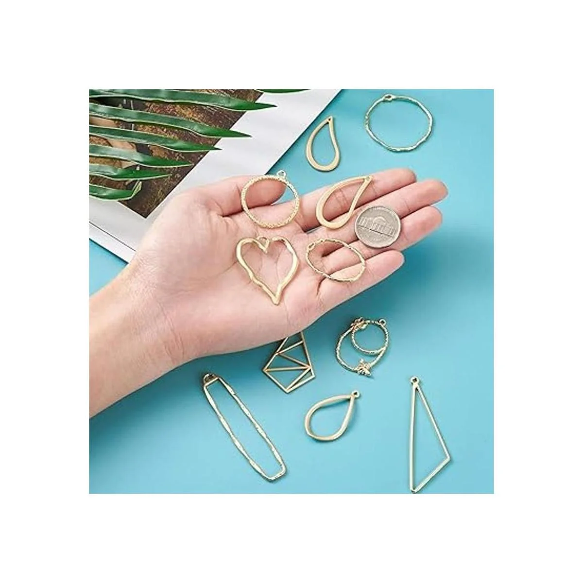 Lo que obtendrás: 48 dijes de bisel dorado en 12 formas, 4 piezas/forma, son rectangulares, anillo, ovalado, colgantes grandes triangulares, corazón, ovalado, gota, cuádruple, geometría.