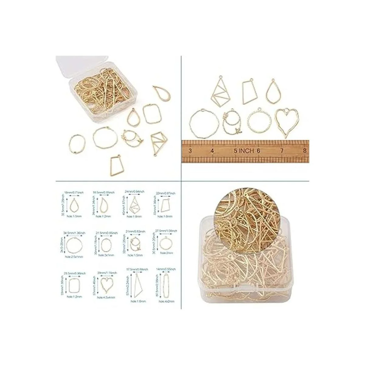 Pandahall 48 colgantes de aleación con parte trasera abierta, 12 estilos de marco hueco geométrico dorado para bricolaje resina UV prensada joyería de flores, Plástico Acero inoxidable