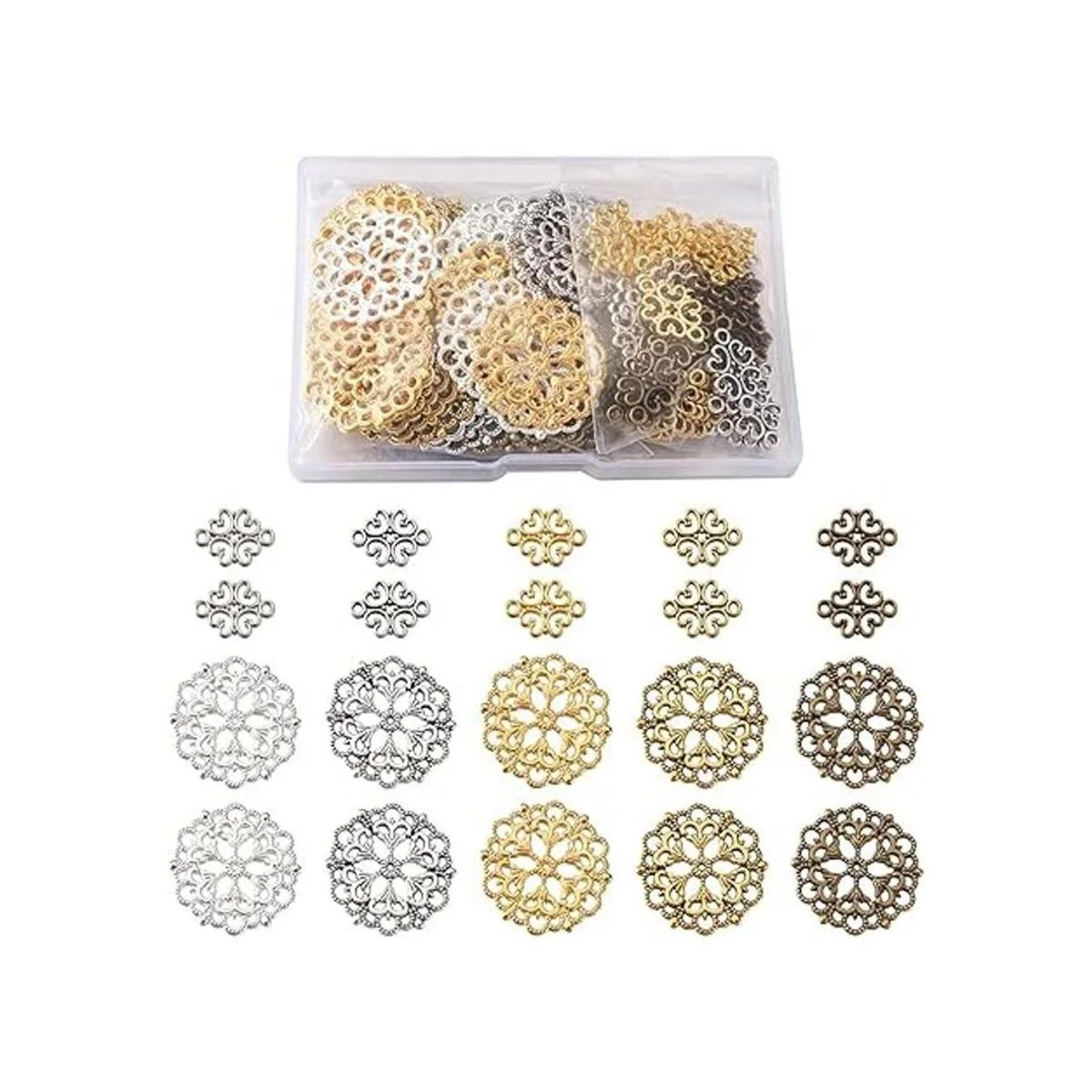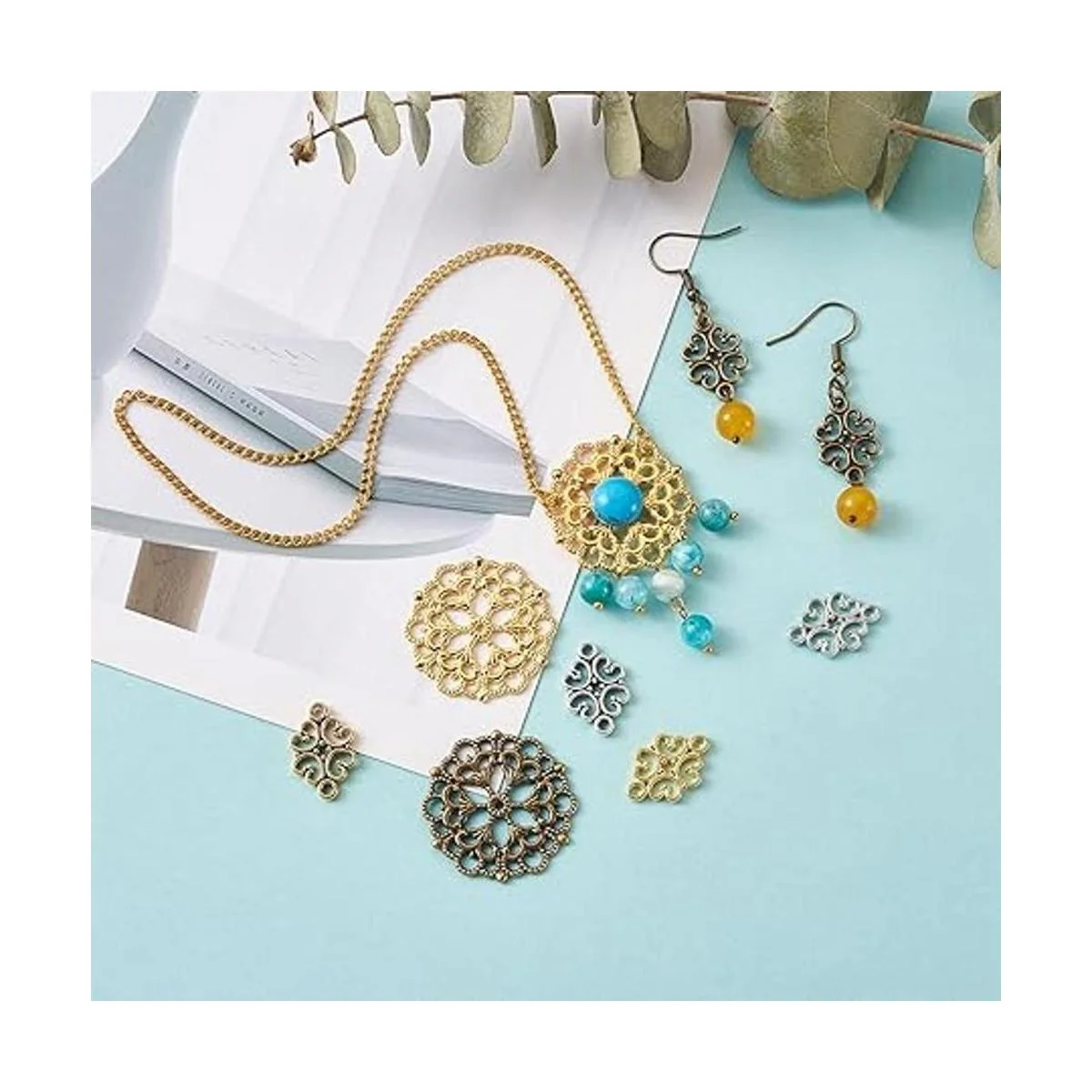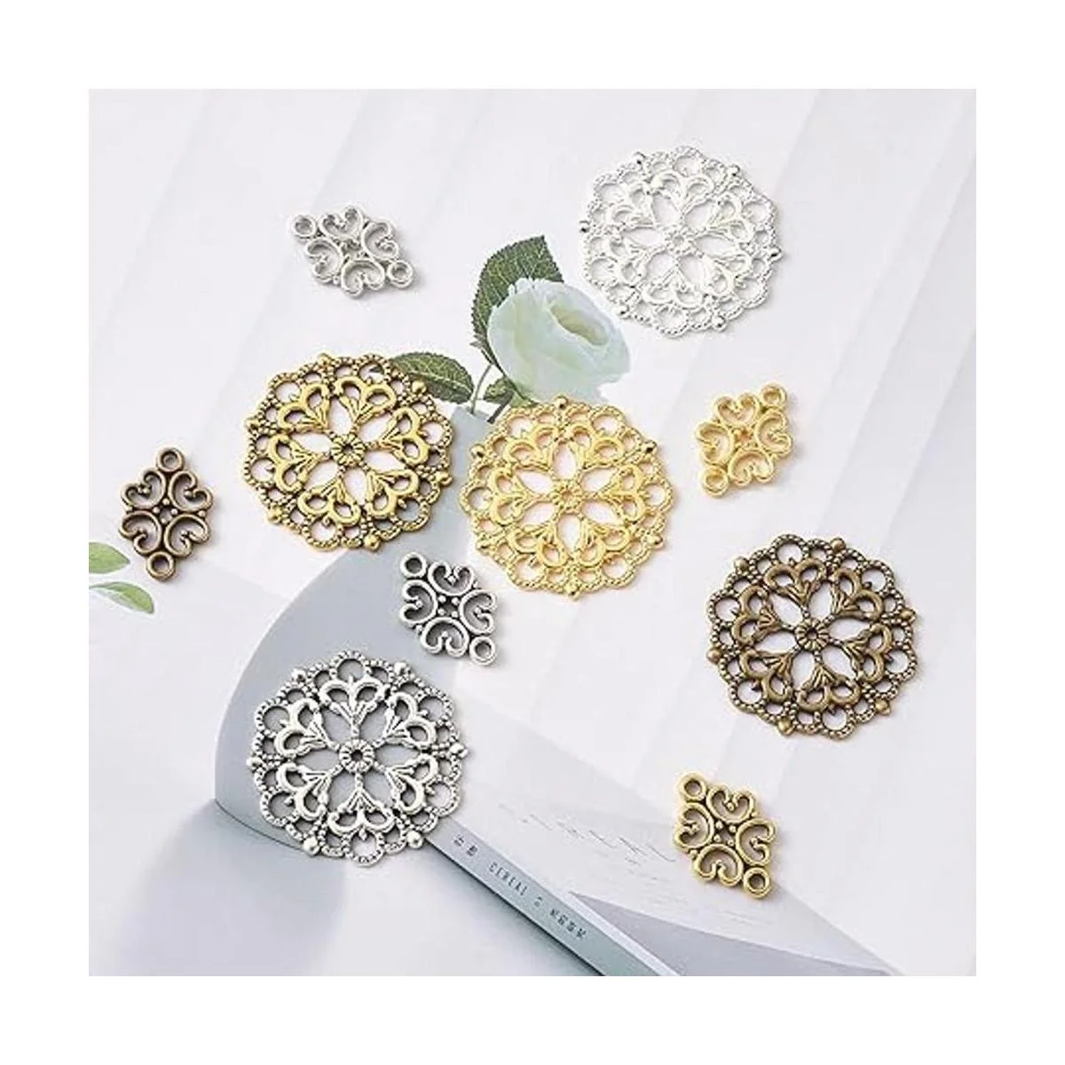 Pandahall 80 piezas de 1.142 in de estilo tibetano de filigrana, eslabones y conectores de flores de 0.709 x 0.512 in para hacer joyas de bricolaje color mixto