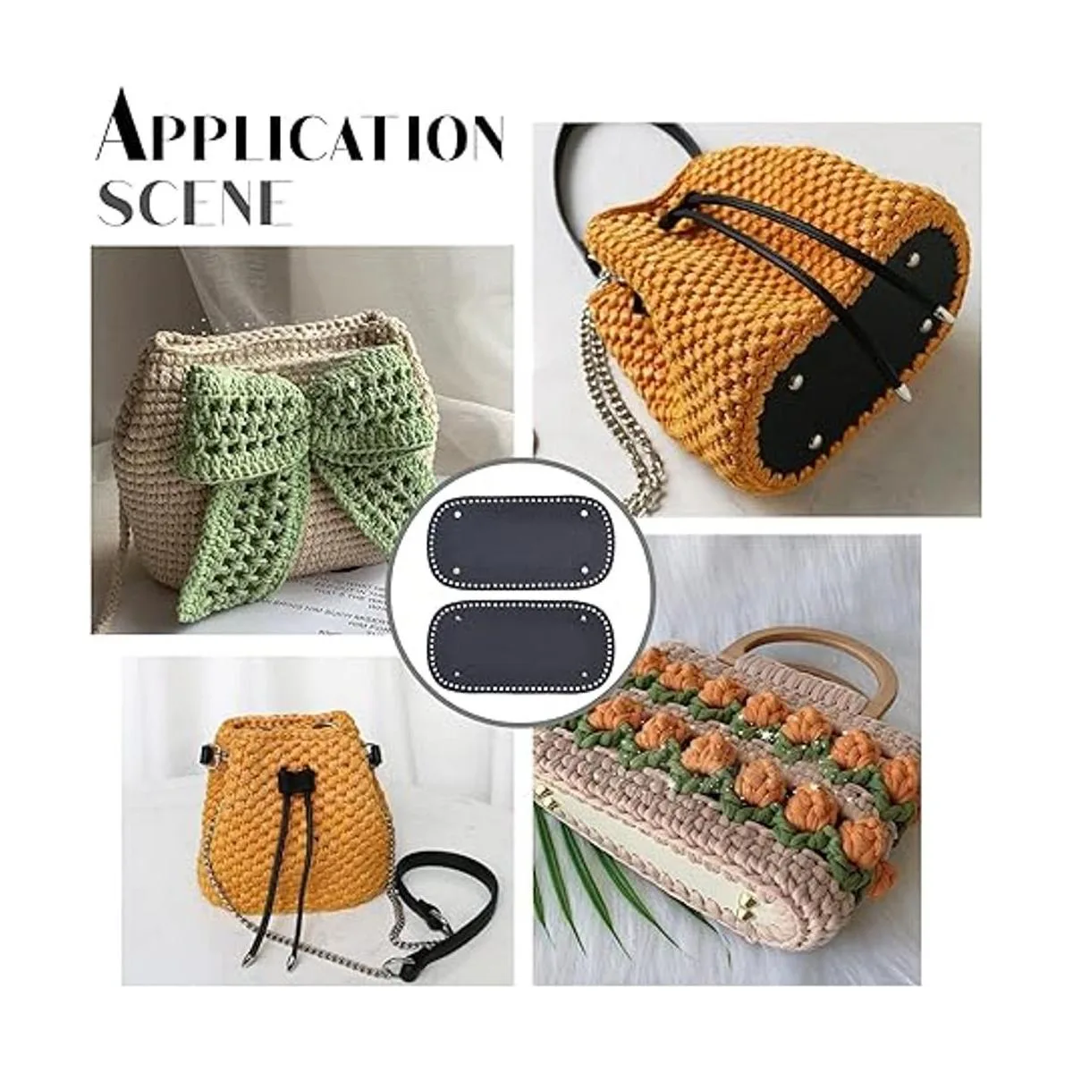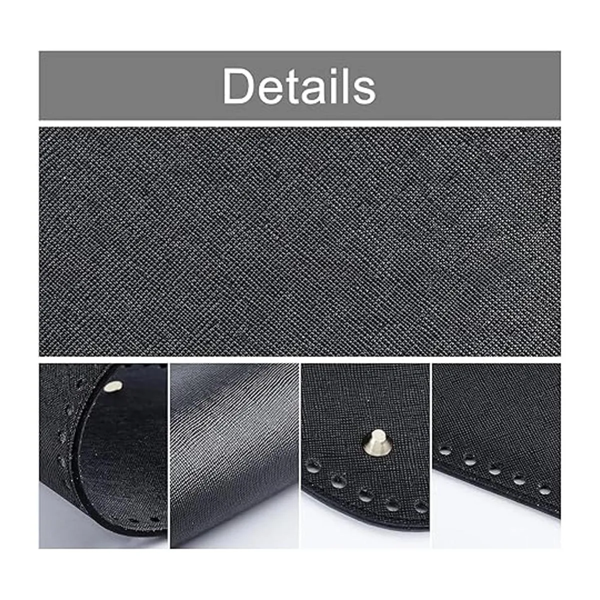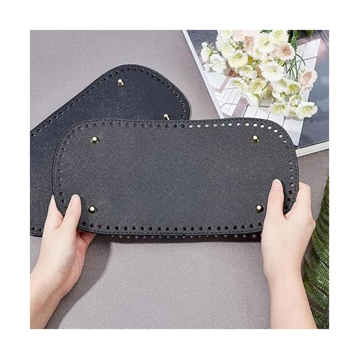 PandaHall Base inferior de bolsa de ganchillo negra, 11.8 x 5.9 pulgadas, bolsa ovalada de piel sintética con agujeros de 0.157 in, clavos para tejer, bolsa de cuero, bolsos de hombro, accesorios de bricolaje