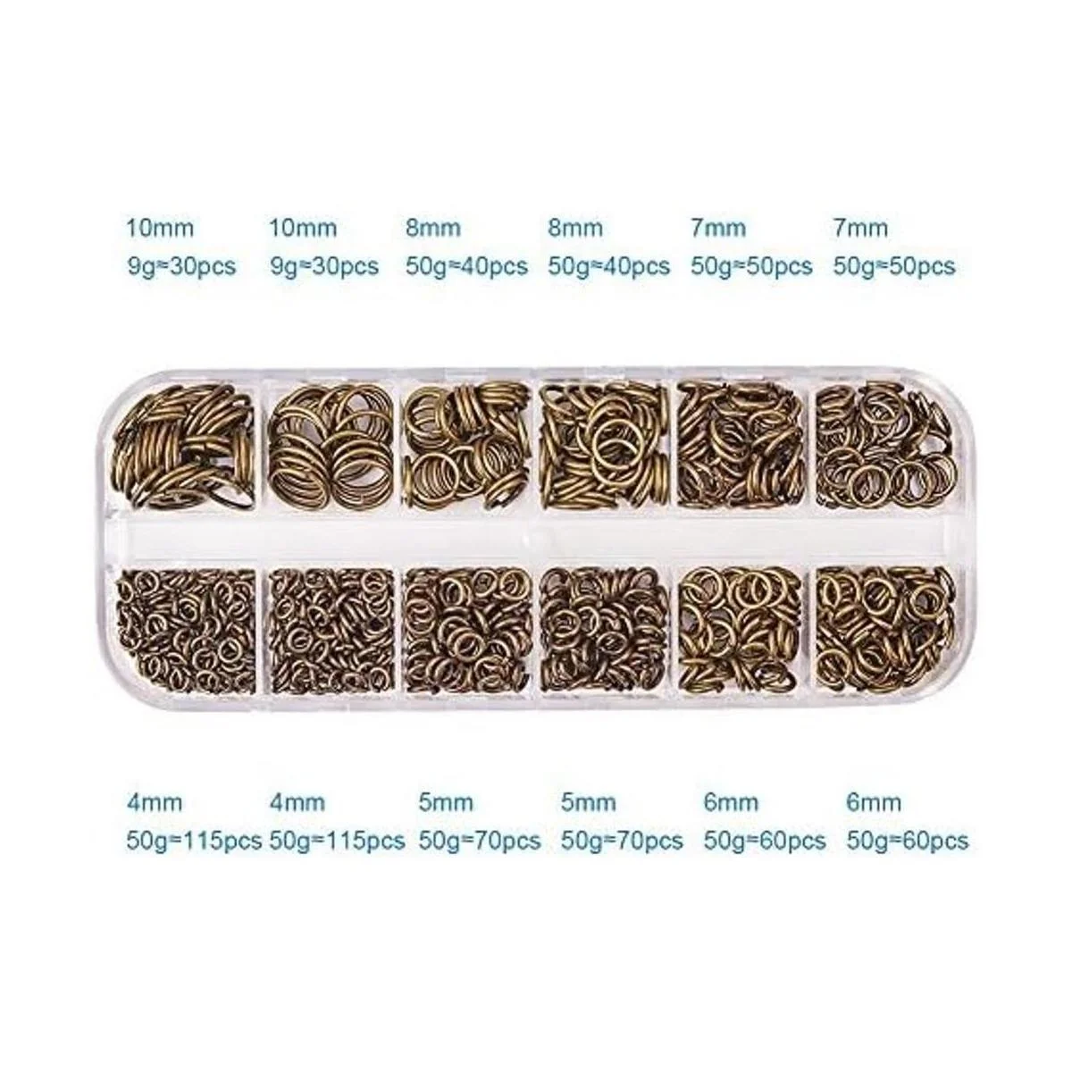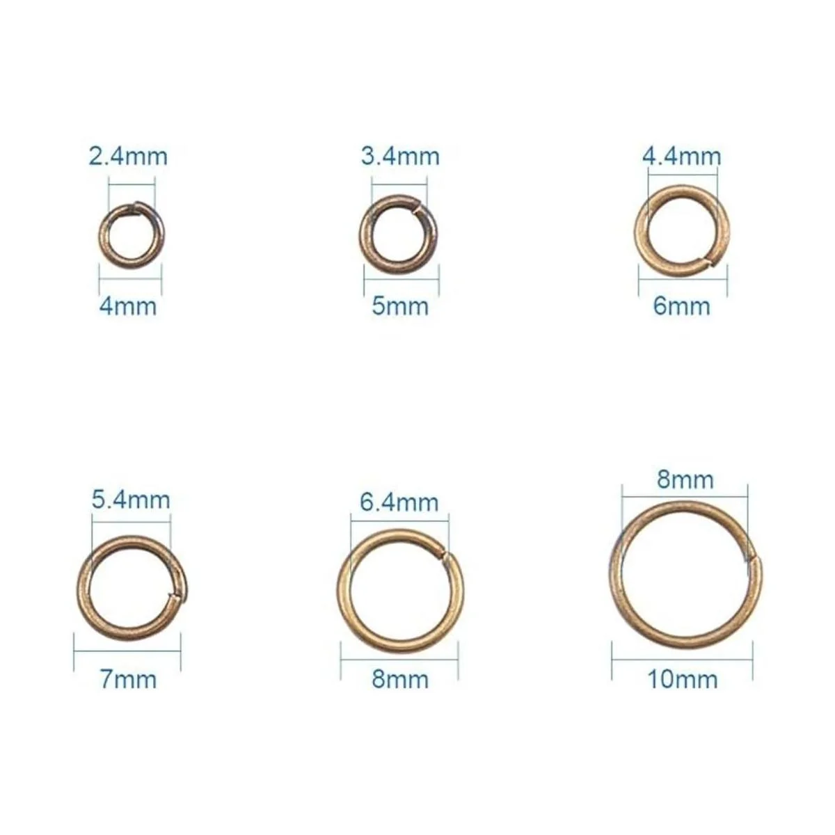 PandaHall Elite 730 anillos de latón abiertos sin soldar, diámetro 0.157 in, 0.197 in, 0.236 in, 0.276 in, 0.315 in, 0.394 in, para fabricación de joyas de bronce antiguo
