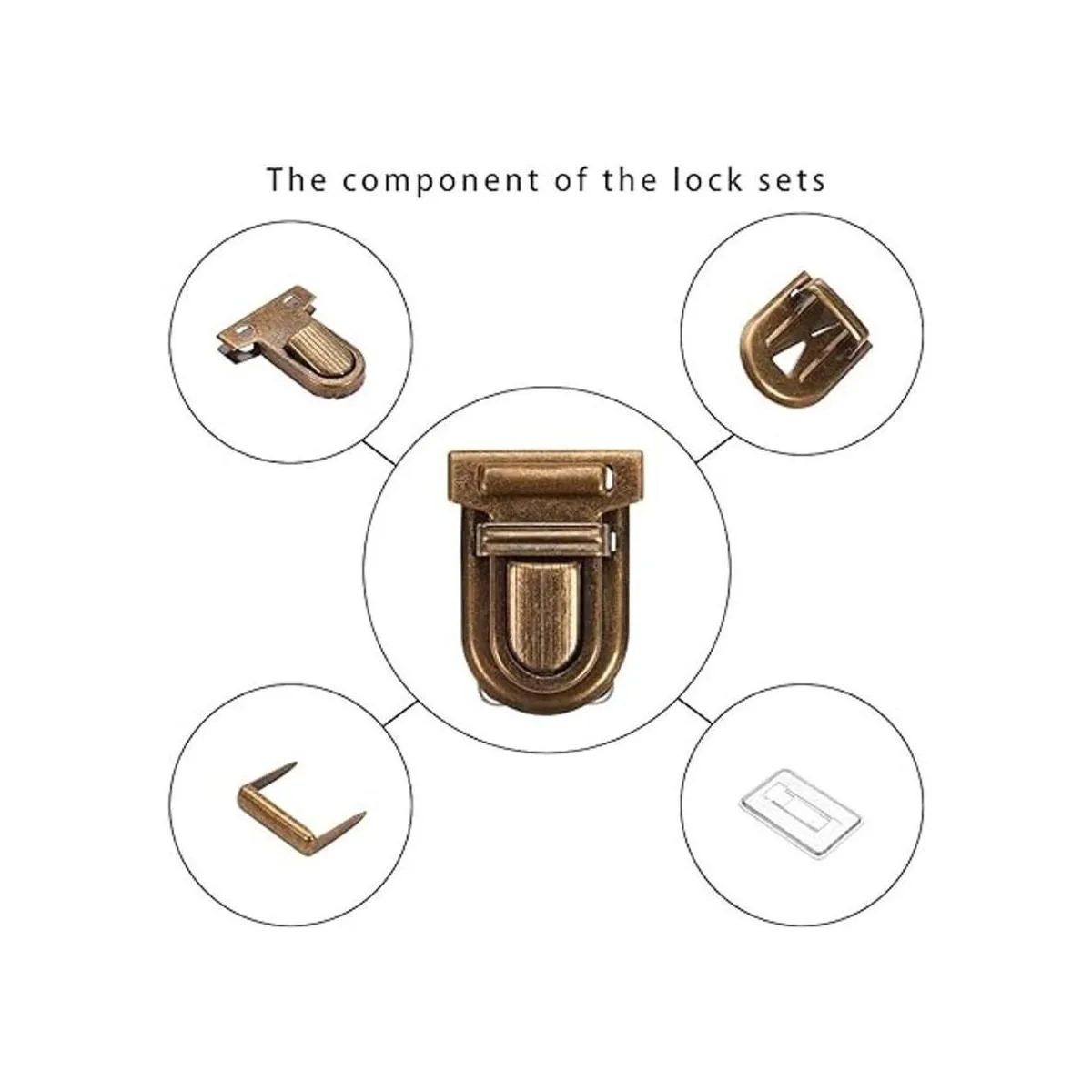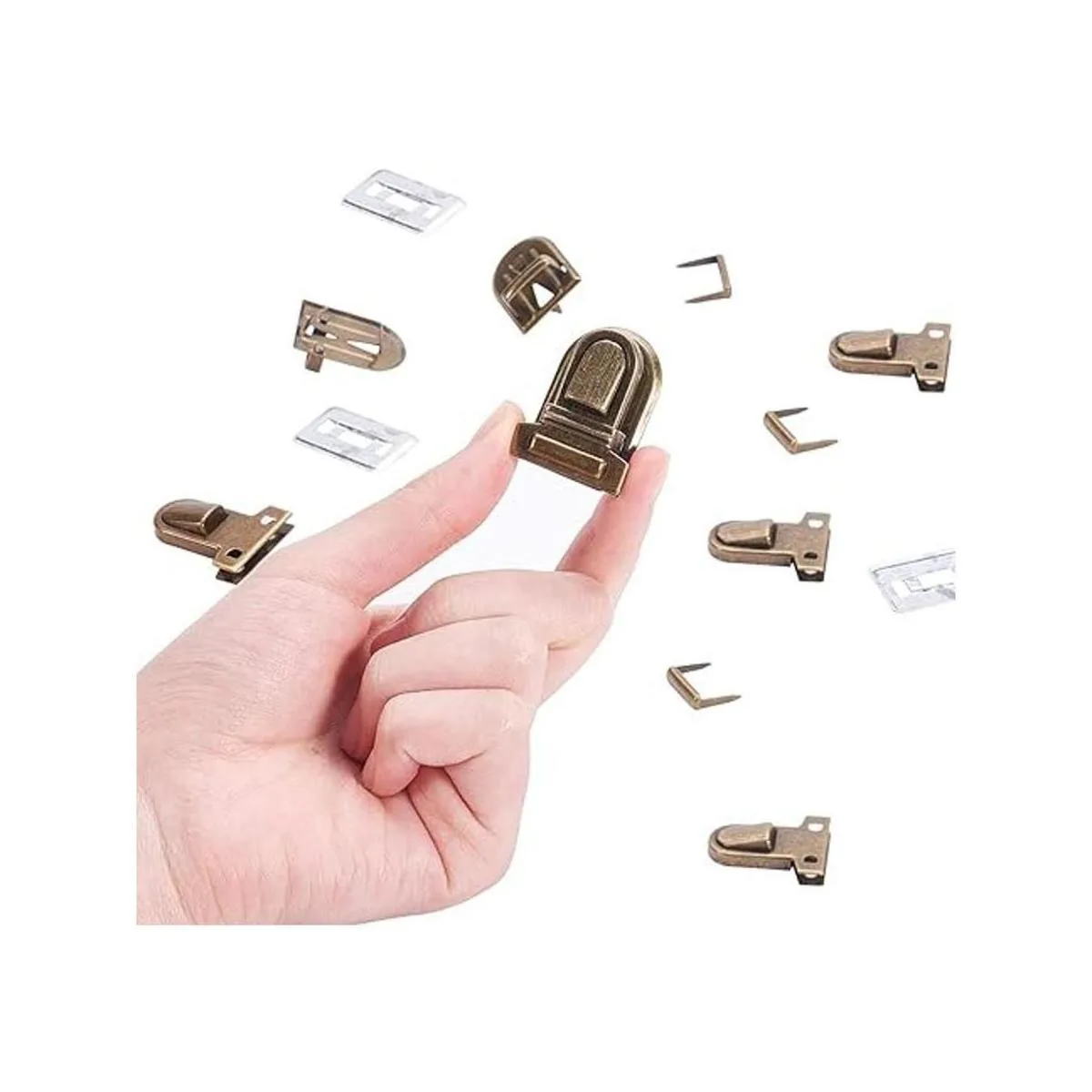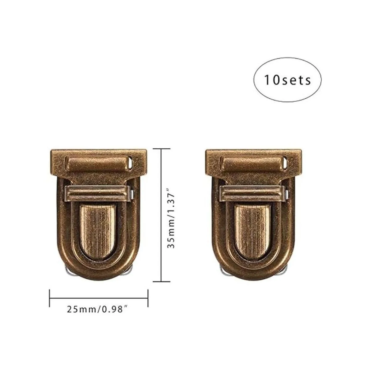 Quantity: package includes 10 sets of antique bronze iron purse push locks in a clear plastic container box.