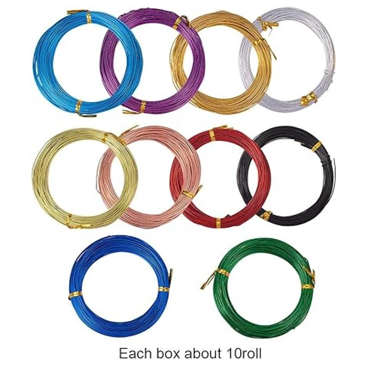PandaHall Elite Paquete de 10 rollos de aluminio de varios colores calibre 1520 para fabricar joyas. Rollo de alambre para cuentas de 65 pies.