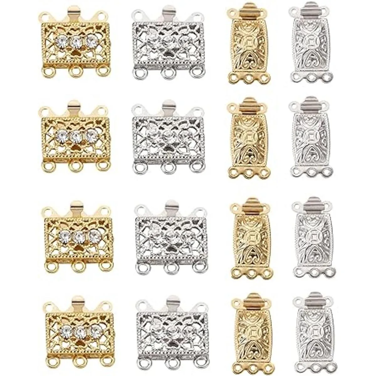 Pandahall Juego de 20 cierres de latón con múltiples hebras, 2 estilos, 3 hebras, rectangulares, para hacer joyas, pulseras, collares, bricolaje