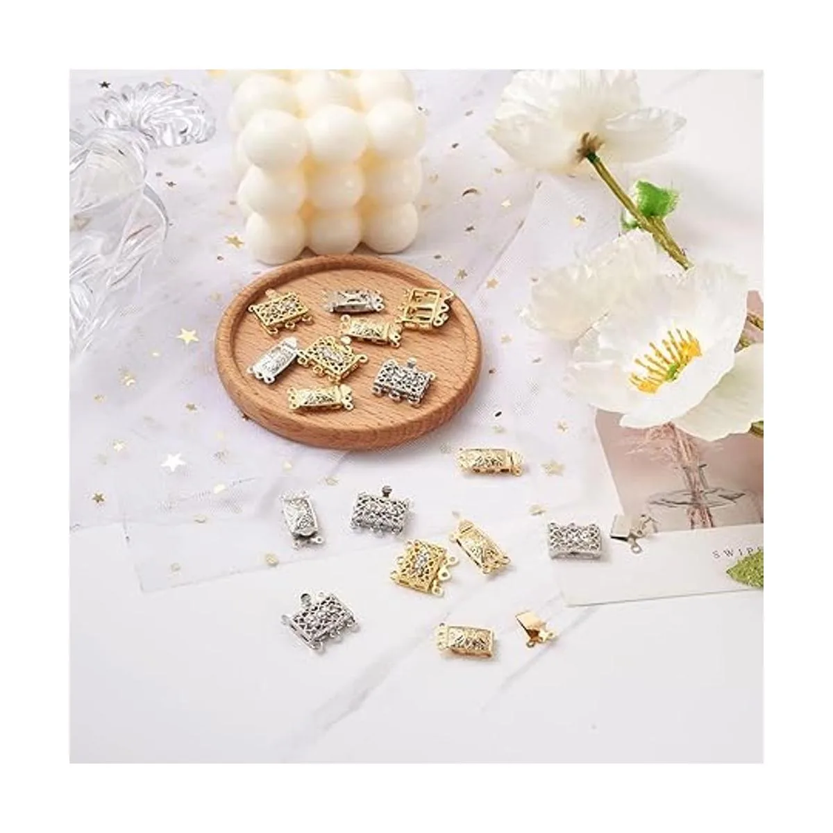 Amplio uso: perfecto para hacer joyas, collares, manualidades, pulseras, ya sea perlas, coral, jade o collar y pulsera. Es el accesorio de cierre sofisticado y perfecto para tu fabricación de joyas.