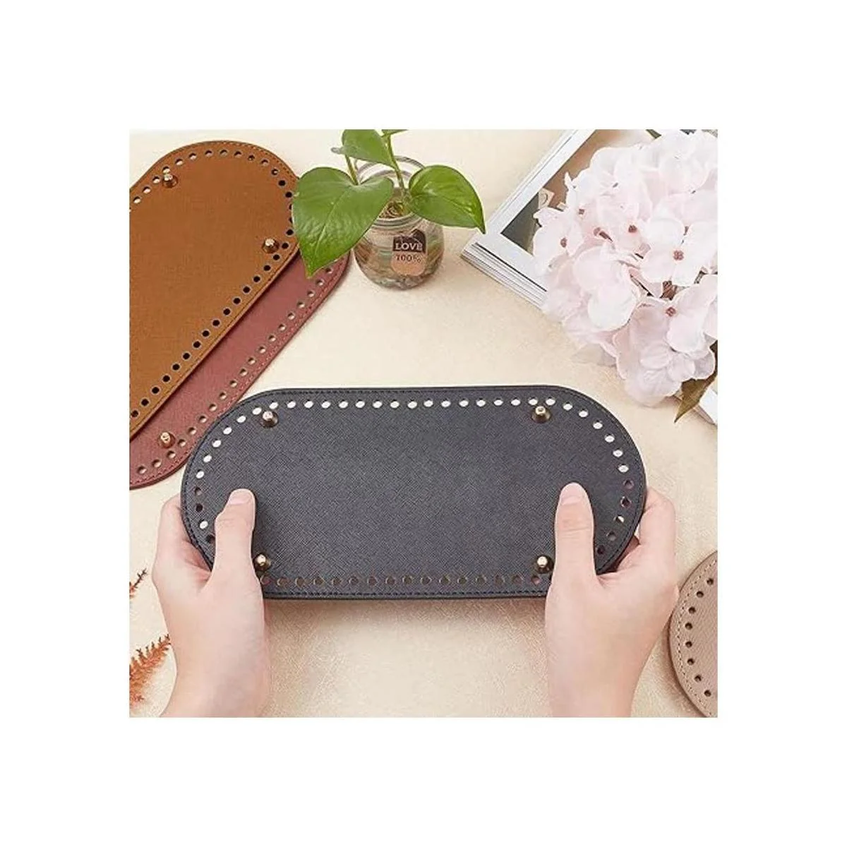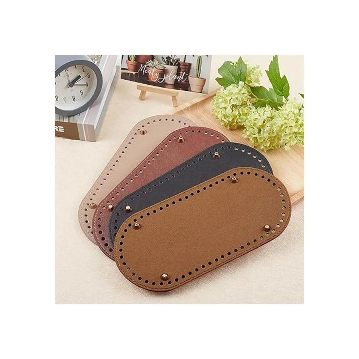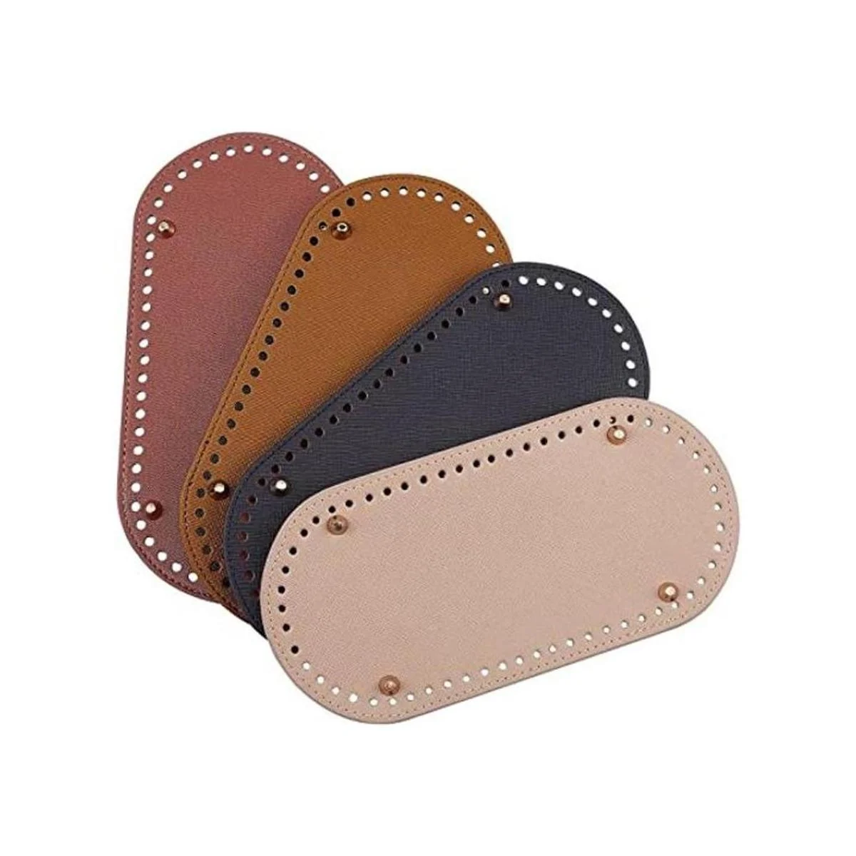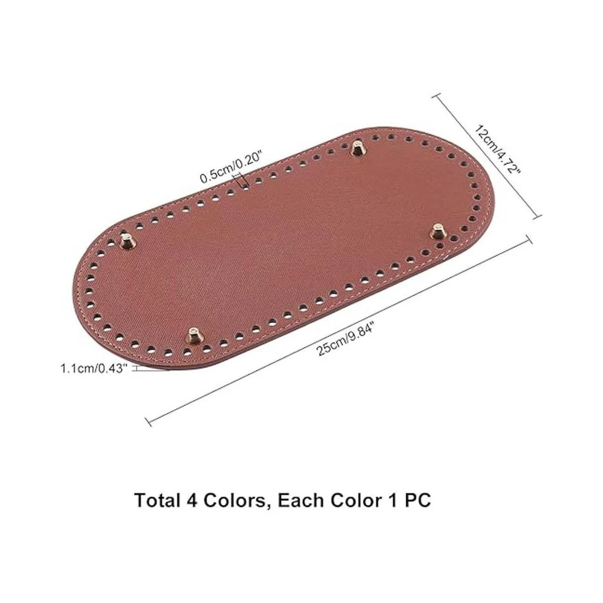 4 colores clásicos: el paquete incluye 4 piezas de parte inferior ovalada en 4 colores: negro, marrón, caqui y gris; cada color 1 pieza; ofrece más opciones para tu bolsa de bricolaje. Tamaño: aproximadamente 4.7 in de ancho, 9.8 in de largo, 0.4 in de grosor, agujero: 0.2 in; el tamaño es universal, adecuado para muchos tipos de bolsas.